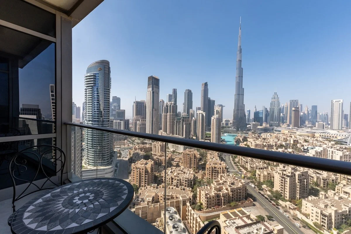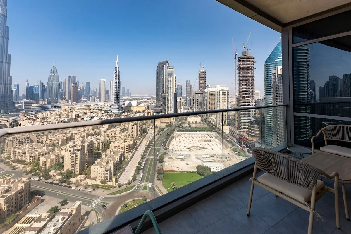 The private balcony offers panoramic views of Downtown Dubai, including the Burj Khalifa. It’s an ideal spot to enjoy the city’s energy or unwind with a sunset drink.