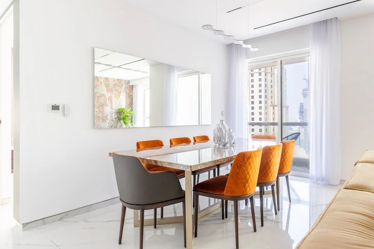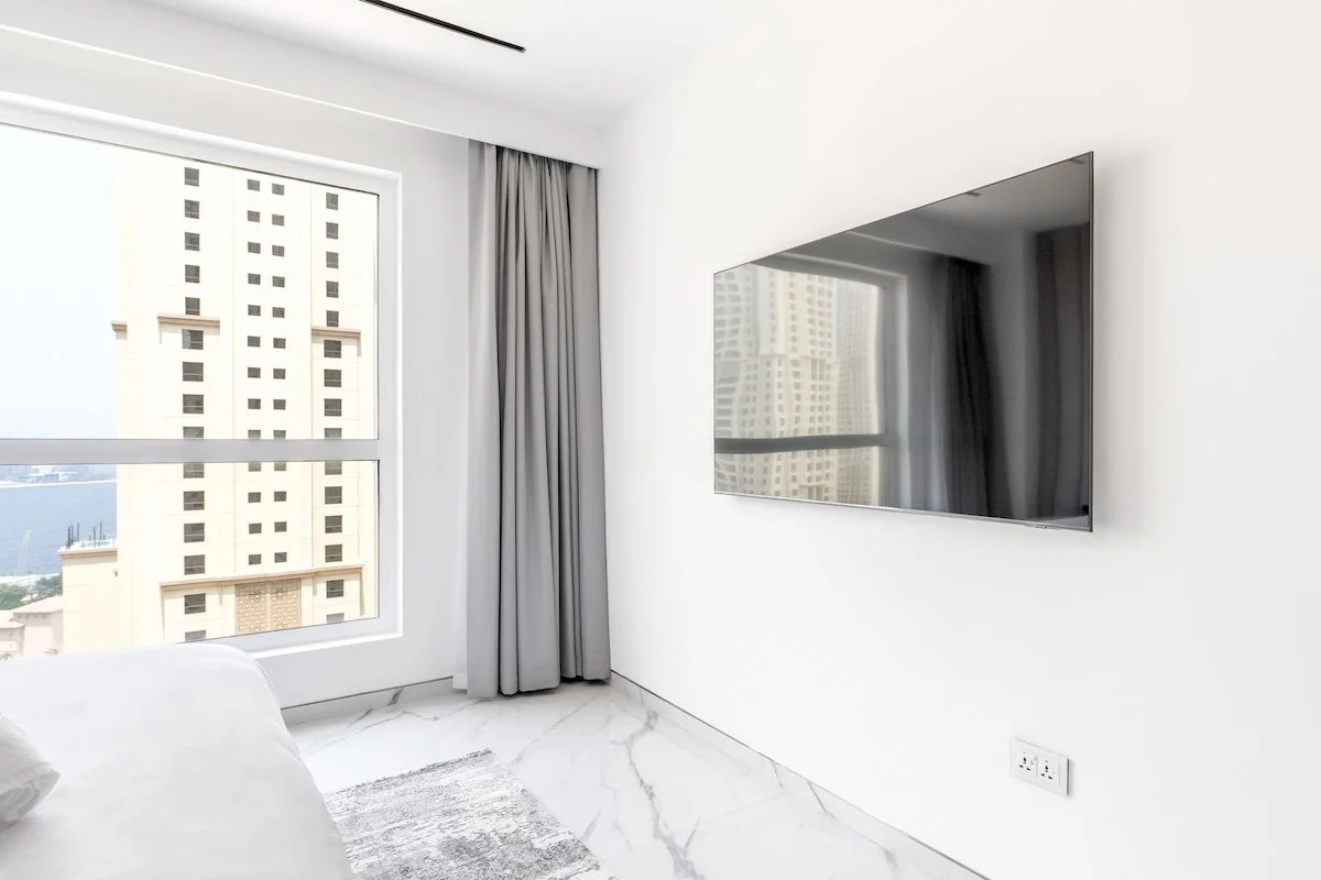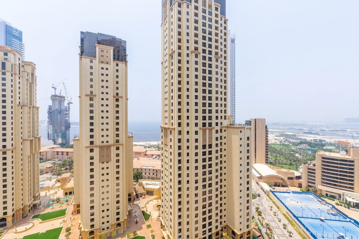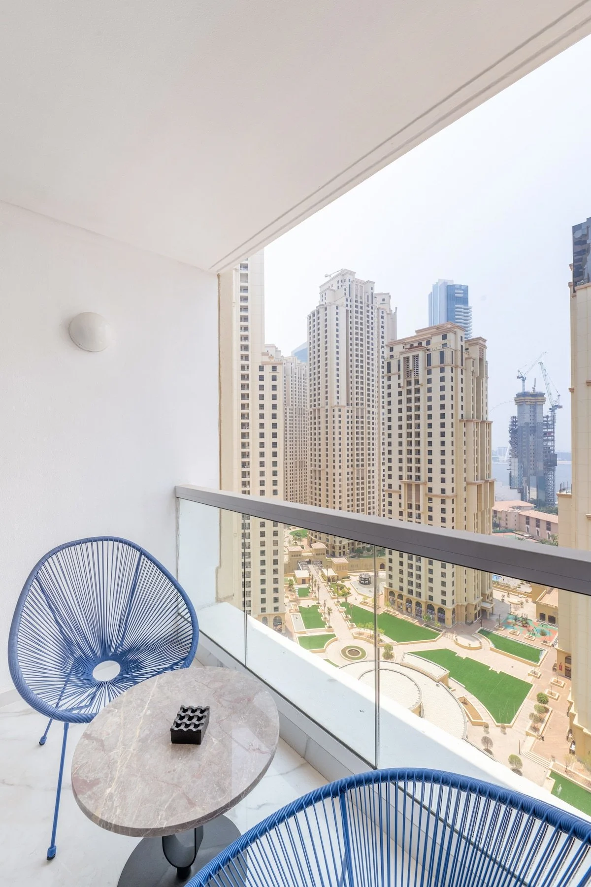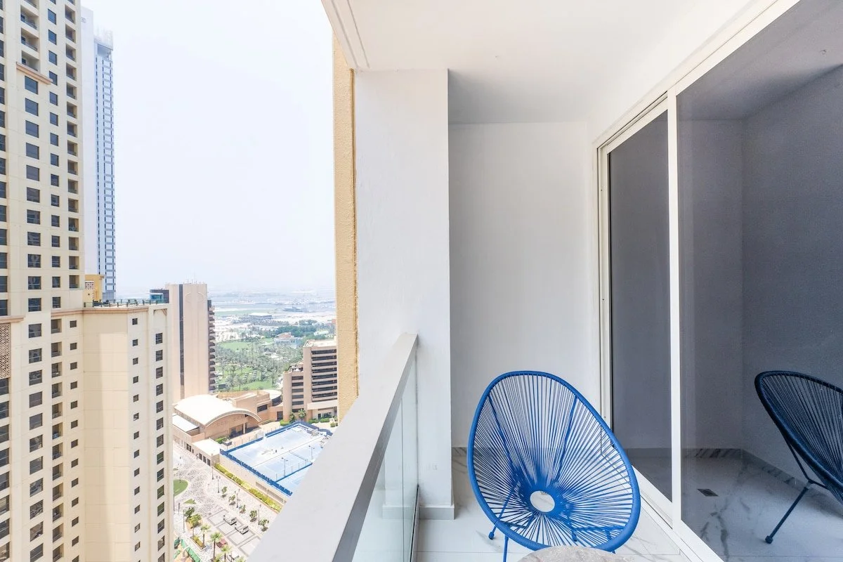 A spacious balcony extends the living space outdoors, providing a peaceful retreat for morning coffee or evening drinks while enjoying the view over JBR and the ocean beyond.