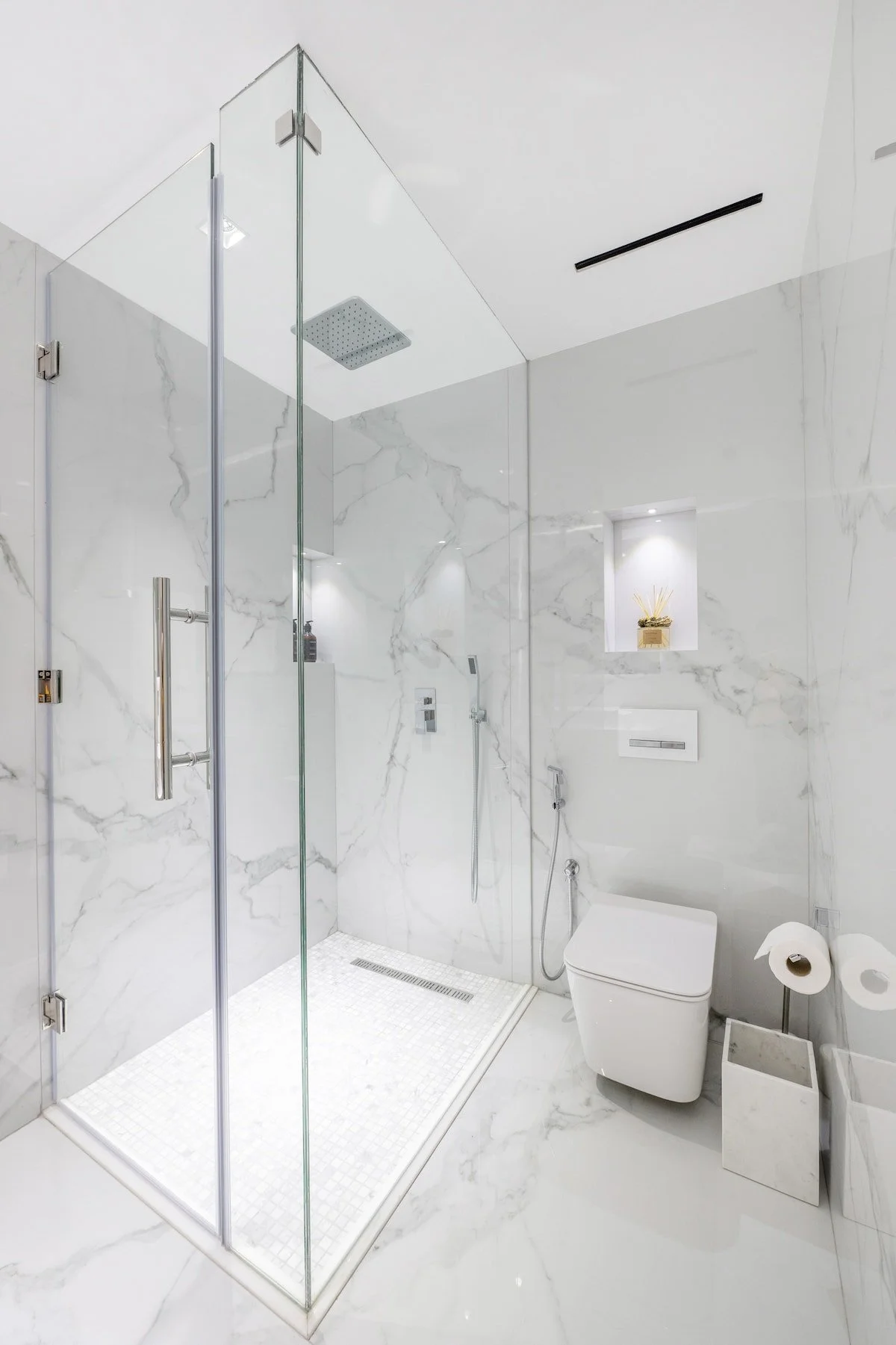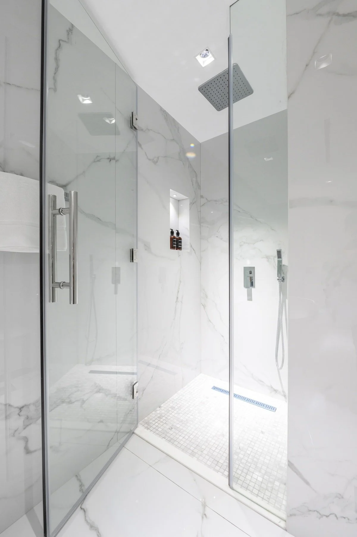 Three en‑suite bedrooms provide sleeping space for up to seven guests. The main suite includes a double bed plus a single bed, offering flexibility for families. The other two bedrooms each feature a double bed and their own bathrooms.