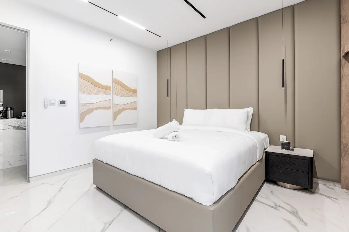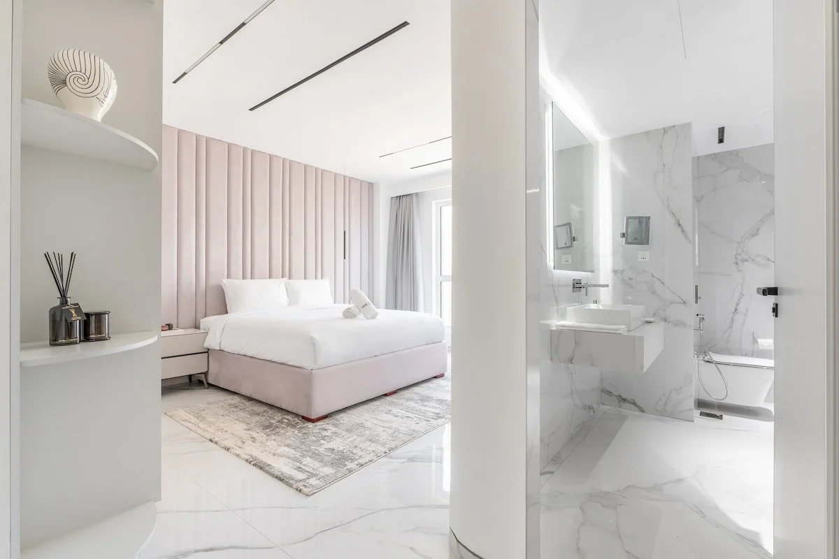 Leso is located in Jumeirah Beach Residence, one of Dubai’s most popular waterfront communities. Guests are steps from The Walk at JBR, a lively promenade lined with cafés, restaurants and boutiques. The beach is within easy reach for sunbathing and swimming, and nearby attractions such as Bluewaters Island (home to Ain Dubai), The Beach and Dubai Marina Mall offer additional dining and entertainment options. Excellent transport links via tram, metro and Sheikh Zayed Road make it easy to explore other parts of the city. With its blend of coastal charm and urban convenience, JBR is perfect for travellers seeking a vibrant yet relaxing stay.
