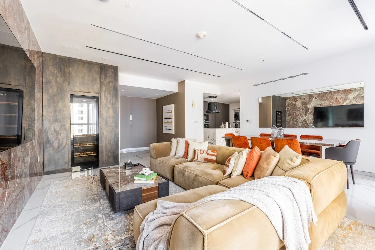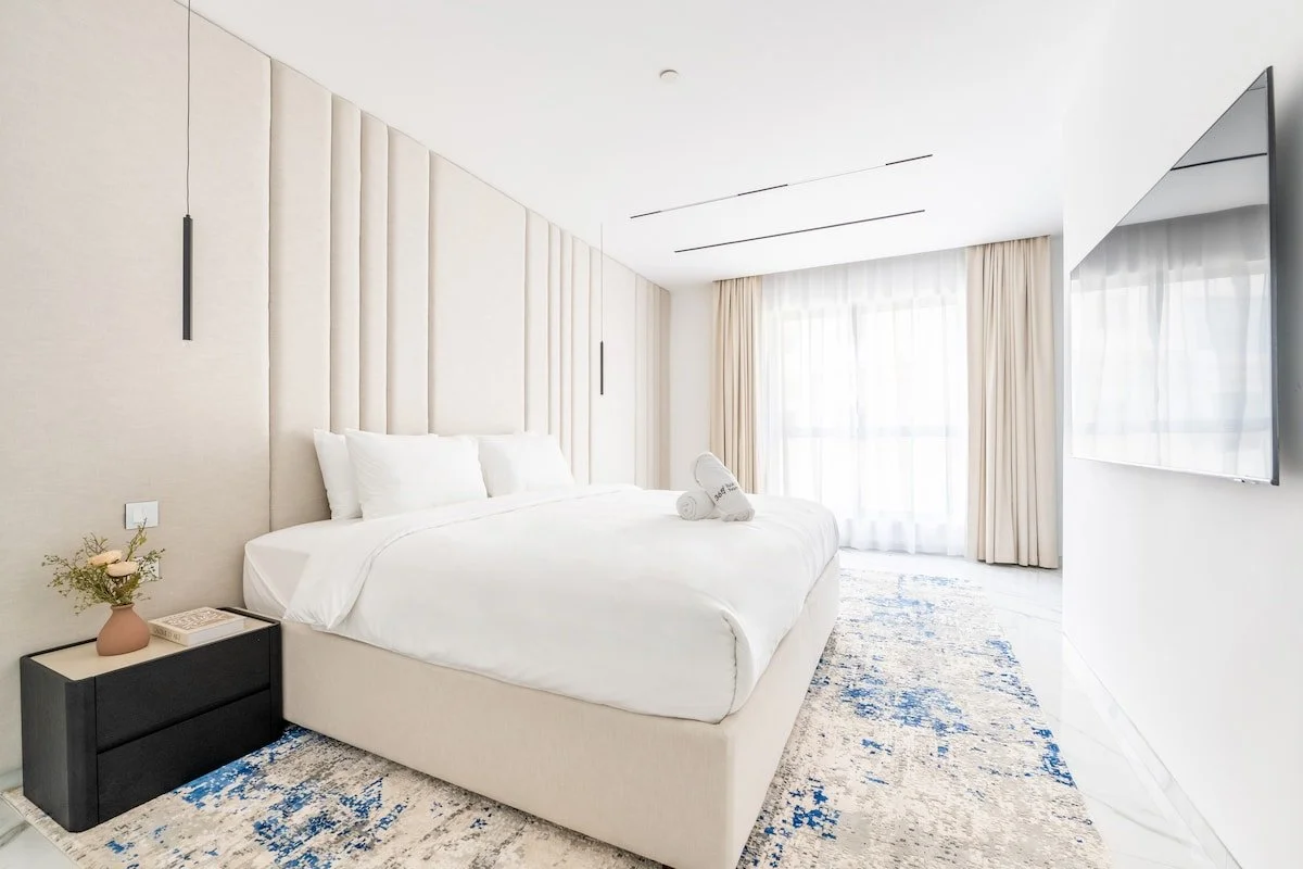 Leso is a refined three‑bedroom apartment in Jumeirah Beach Residence, designed to accommodate up to 7 guests in comfort and style. Situated within a premium development, the home offers partial sea views and overlooks the vibrant community scenery of JBR. Floor‑to‑ceiling windows flood the open living space with natural light, while an elegant balcony provides a serene spot to start the day or unwind at sunset. The open‑plan kitchen and dining area are fully equipped with modern appliances and generous counter space, inviting guests to prepare home‑cooked meals. Each bedroom has its own en‑suite bathroom; the primary bedroom includes a double and single bed, making it versatile for families. Thoughtful touches such as housekeeping every three days and a weekly linen change ensure a carefree stay. Leso blends luxury and practicality in a sought‑after beachfront neighbourhood.