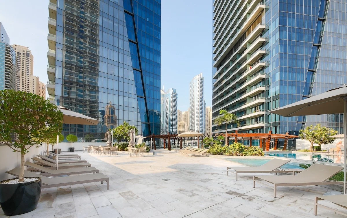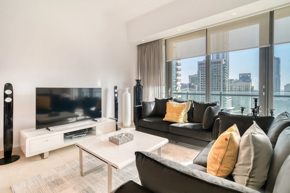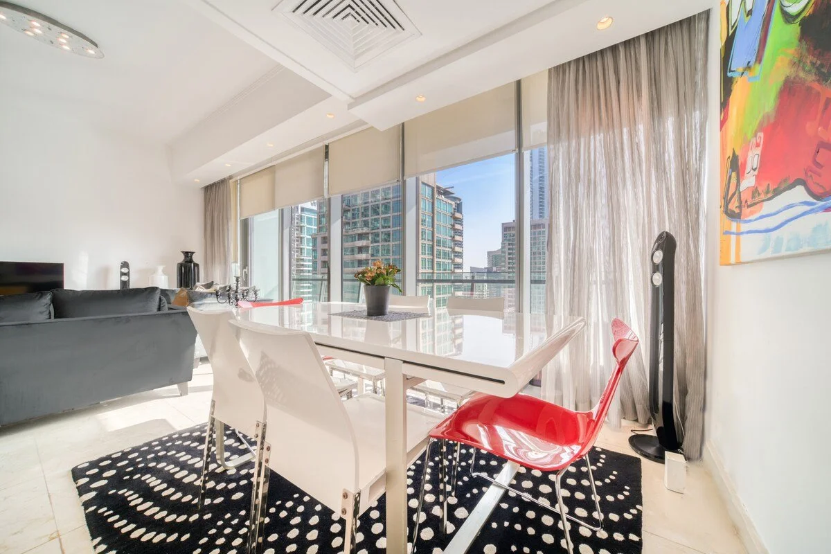 Located in the heart of Dubai Marina, Ojos offers easy access to the area’s vibrant waterfront lifestyle. Stroll along the marina promenade to reach Dubai Marina Mall and Pier 7’s upscale restaurants, or walk five minutes to the sandy beach at JBR for sunbathing and water sports. You can charter a yacht from the nearby marina for a cruise around Palm Jumeirah or the World Islands. The neighbourhood is packed with cafés, boutiques and entertainment options, and excellent transport links (tram, metro and Sheikh Zayed Road) make it simple to explore other parts of Dubai. Despite its central location, the apartment’s high‑floor position ensures a peaceful retreat with stunning views.