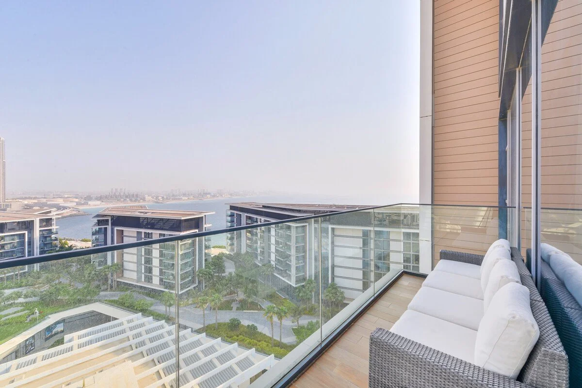 Several private balconies offer stunning sea and skyline views, perfect for outdoor relaxation or a morning coffee.