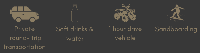 Every experience includes private 4x4 transfers, a dedicated guide, and refreshments. Designed for freedom, comfort, and adrenaline, a truly exclusive desert experience tailored just for you.