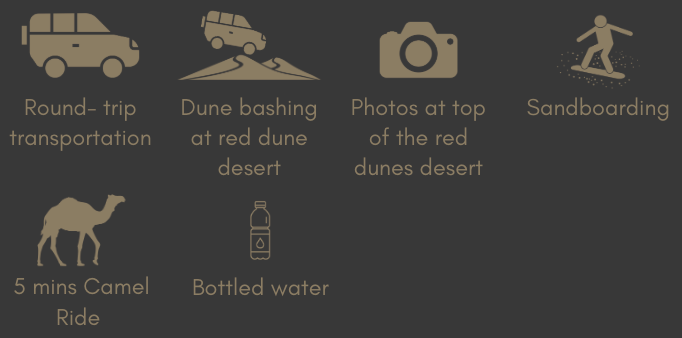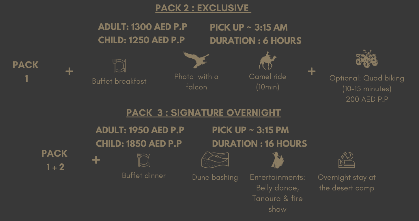 Available Upgrades: Quad biking (30 minutes) 150 AED