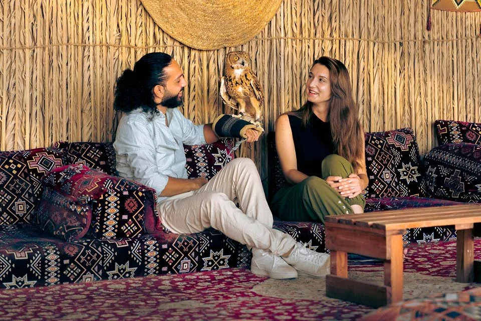 Travel through the desert by camel or vintage Land Rover, meet Bedouin storytellers, and witness traditional falcon and Saluki demonstrations.