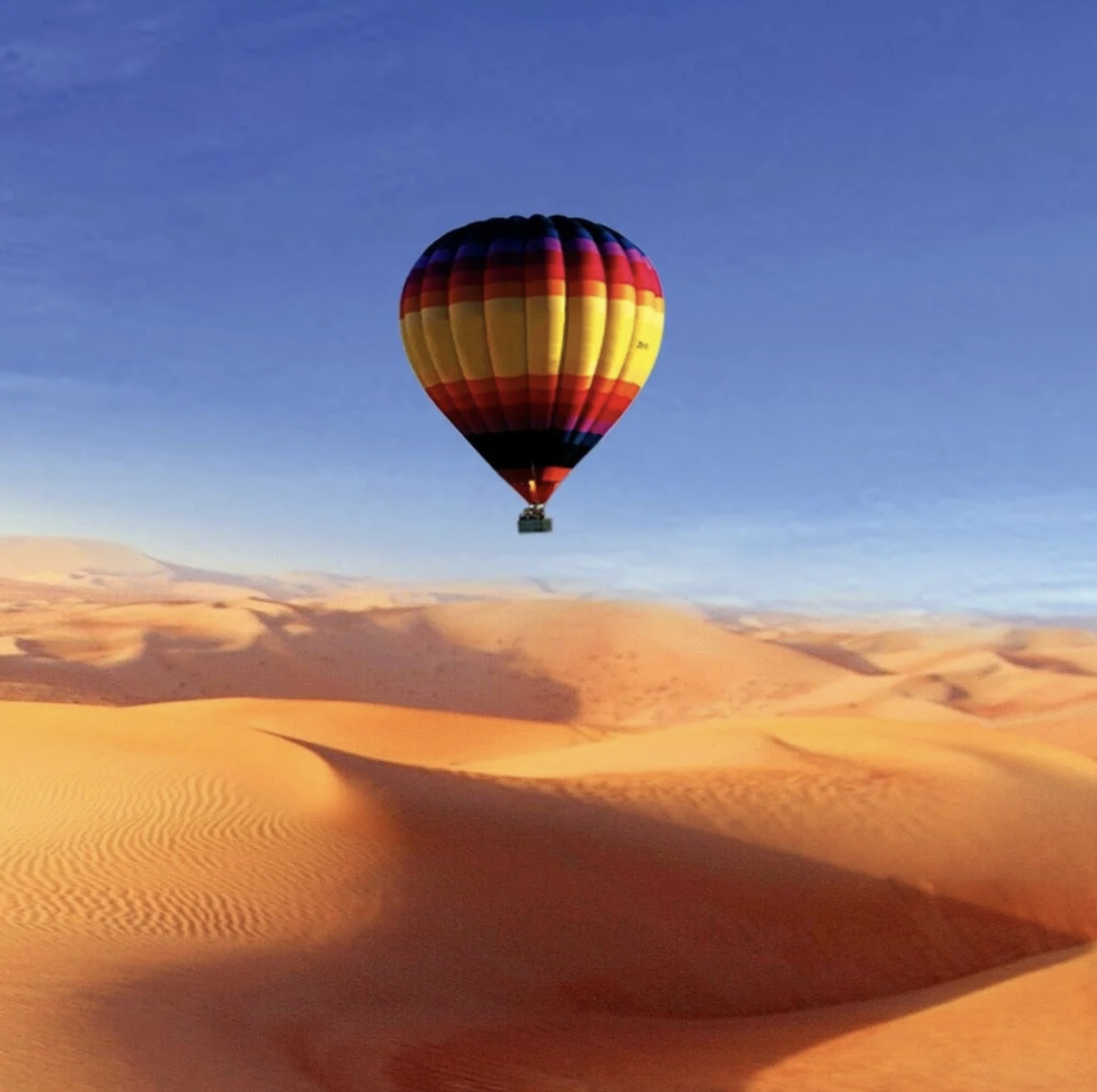 Witness the magic of Dubai’s sunrise with a peaceful hot air balloon flight over the Margham Desert. Soar above golden dunes, Bedouin villages, camels, and gazelles as the sun illuminates the landscape.