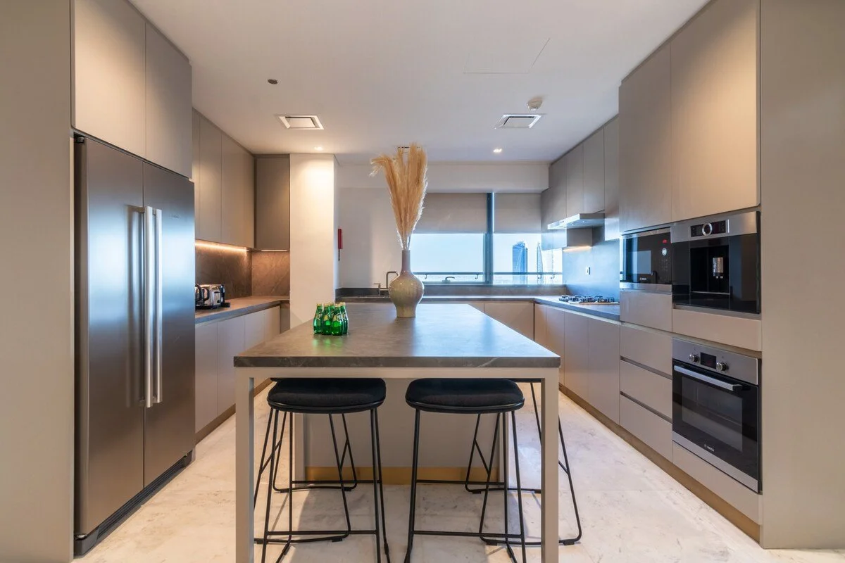 Penthouse Lara sits in Downtown Dubai, midway between the Dubai Mall and Business Bay. This district is famed for its landmarks, including the Burj Khalifa, Dubai Fountain and Dubai Opera, as well as world‑class shopping, dining and entertainment. Residents can stroll along Sheikh Mohammed Bin Rashid Boulevard, explore Souk Al Bahar or enjoy the nightlife of Business Bay. Despite the lively surroundings, the penthouse’s elevation and private floor ensure tranquillity and exclusivity. Major roads and the metro provide quick connections to other city districts, making this residence a convenient base for both business and leisure.