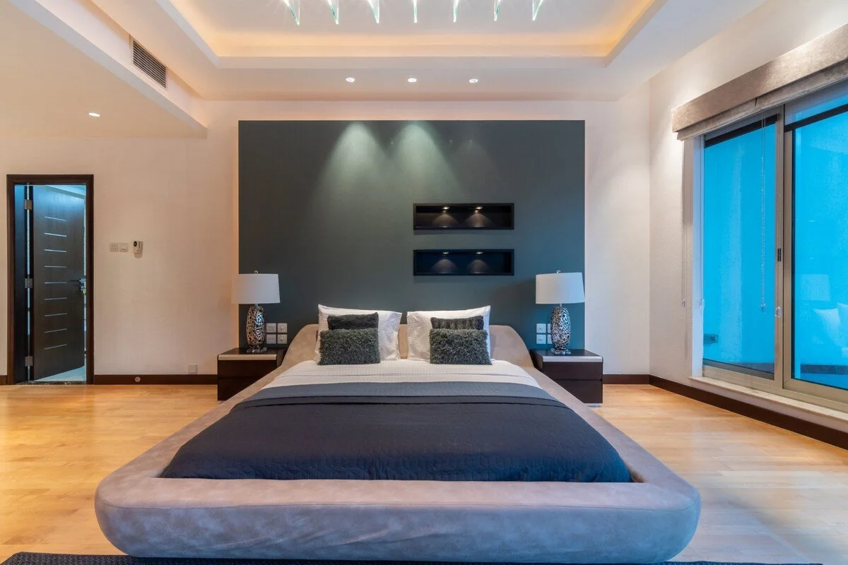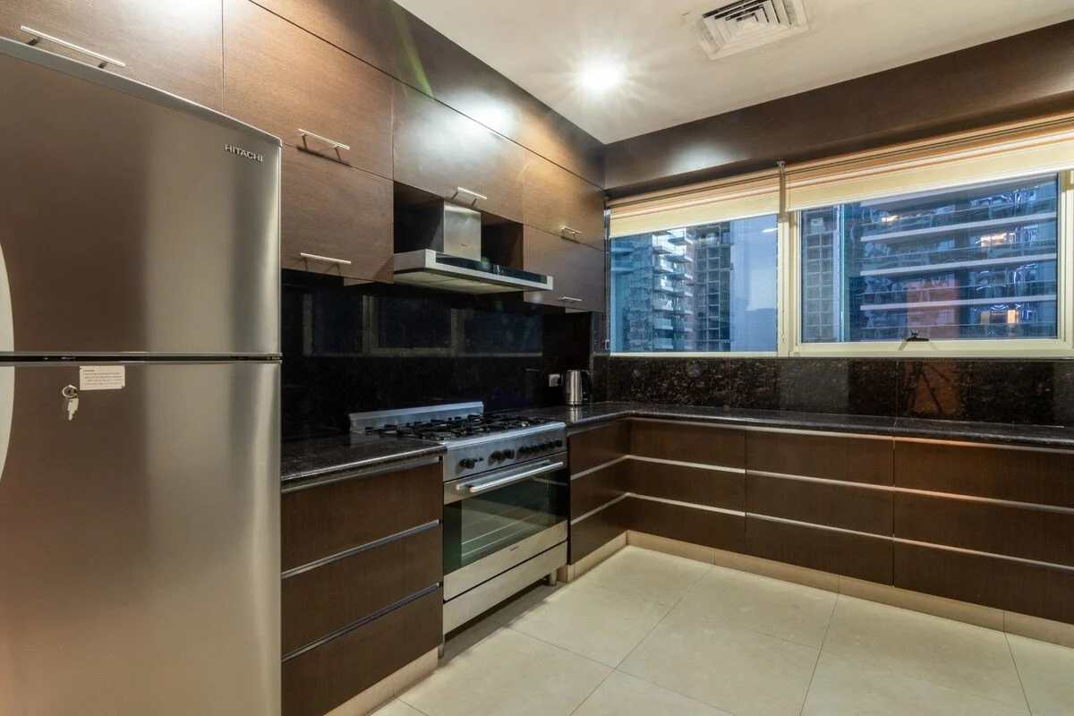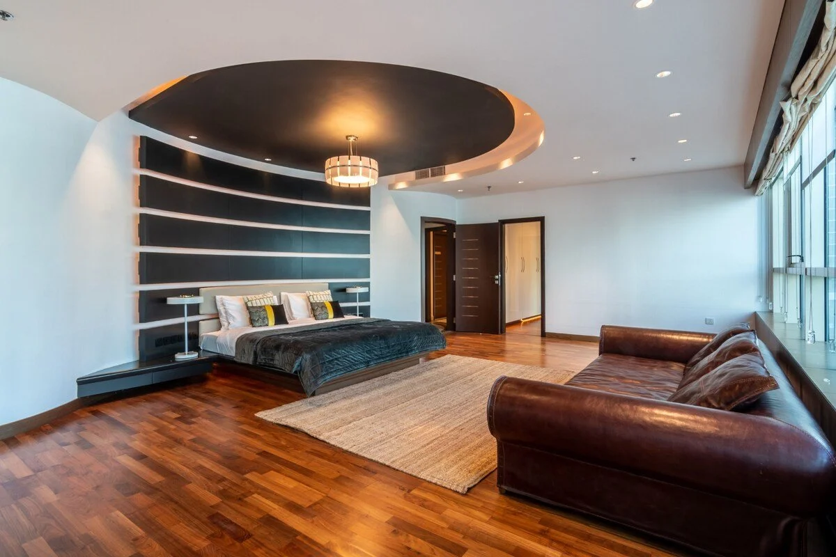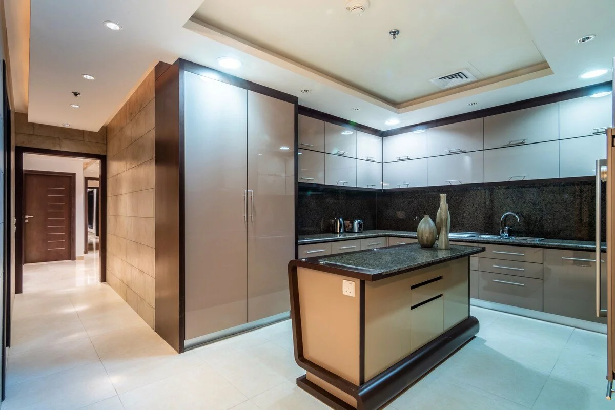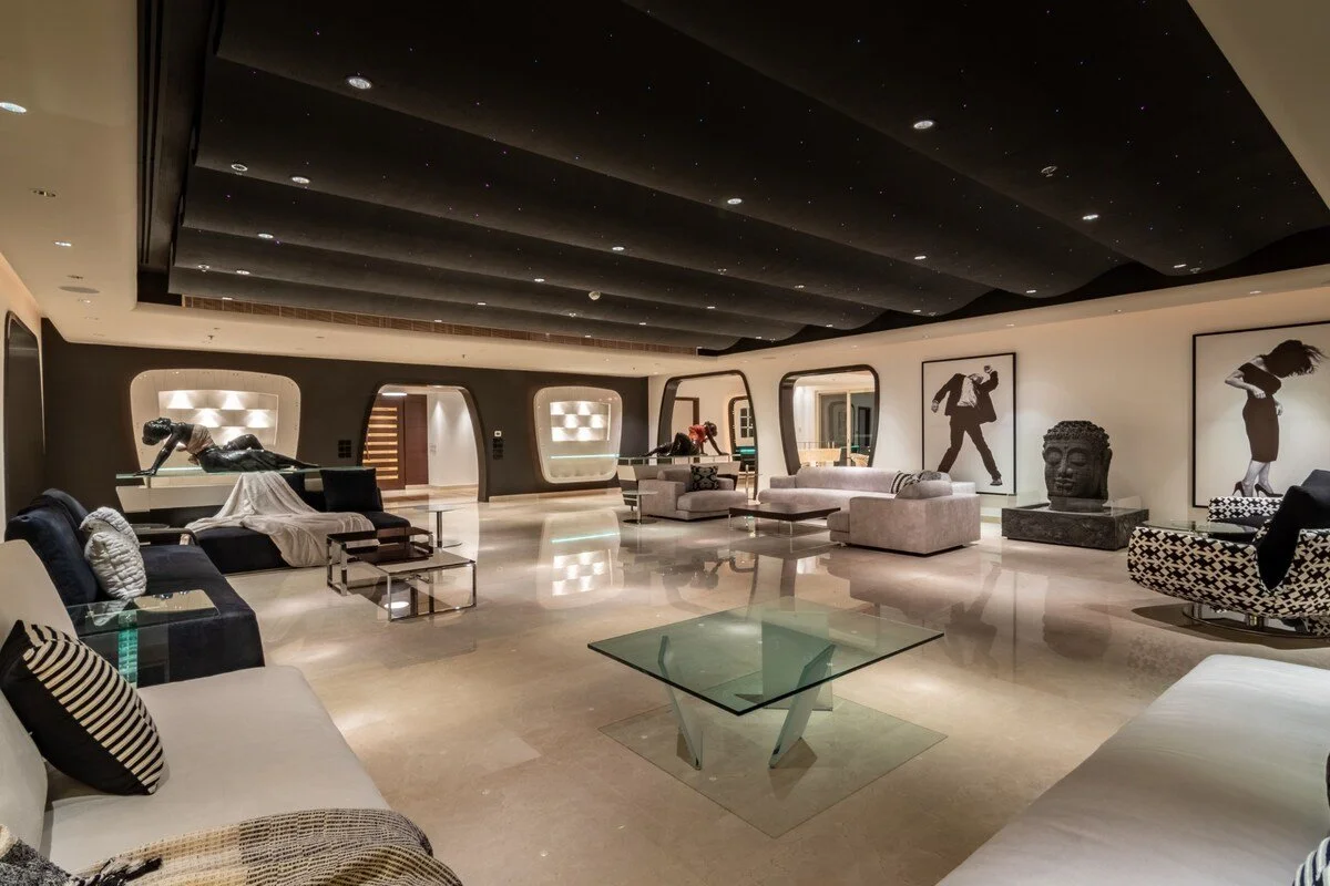 Penthouse Lojo is a full‑floor residence crowning a tower in Dubai Marina. Designed for large groups or families, it spans an entire level and boasts floor‑to‑ceiling windows that frame panoramic views of the marina and city skyline. The open‑plan layout features a vast living room with multiple seating areas, a dining table for 12 guests and a separate lounge with a billiards table and bar. A closed gourmet kitchen supports both casual meals and formal entertaining, while a maid’s room adds convenience for long stays. Contemporary interiors blend neutral tones with sleek finishes, and a wrap‑around balcony invites outdoor lounging above the waterfront. Residents also enjoy access to the building’s shared pool, gym and sun deck. With its expansive footprint and prime location, Penthouse Lojo delivers a luxurious urban retreat in the heart of Dubai Marina.