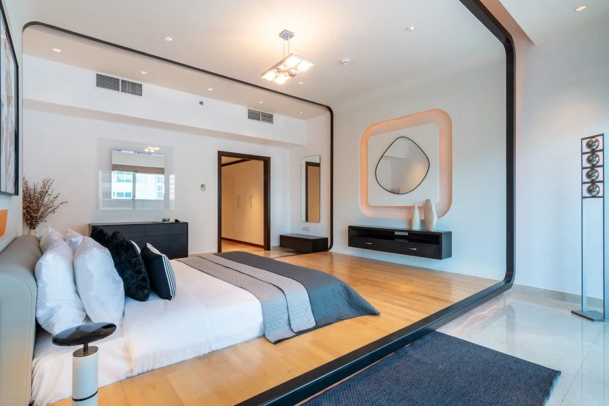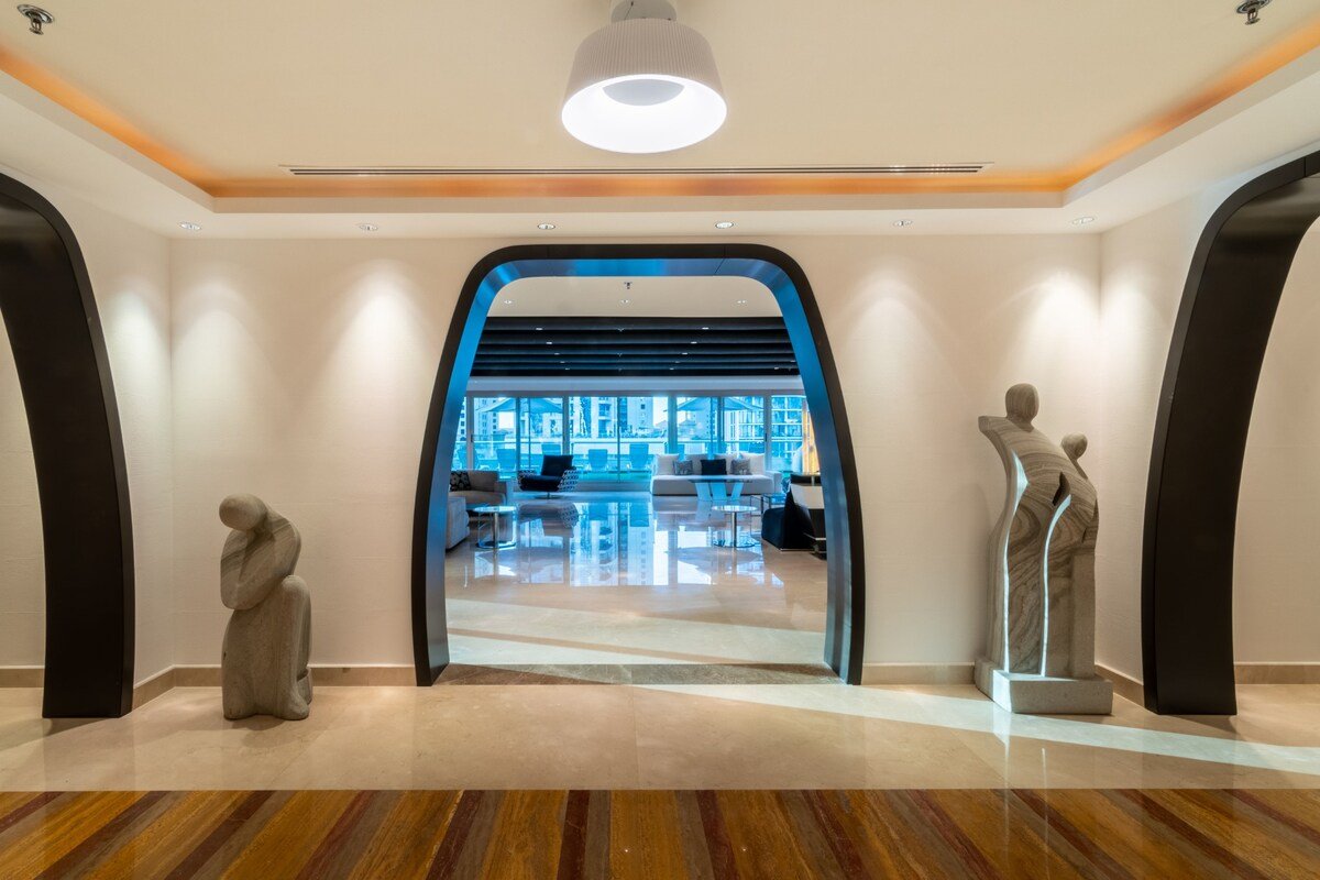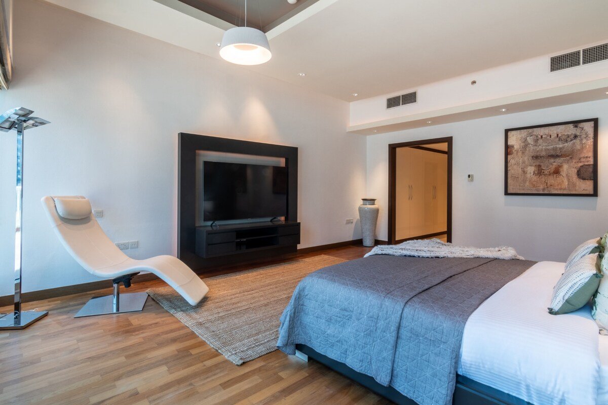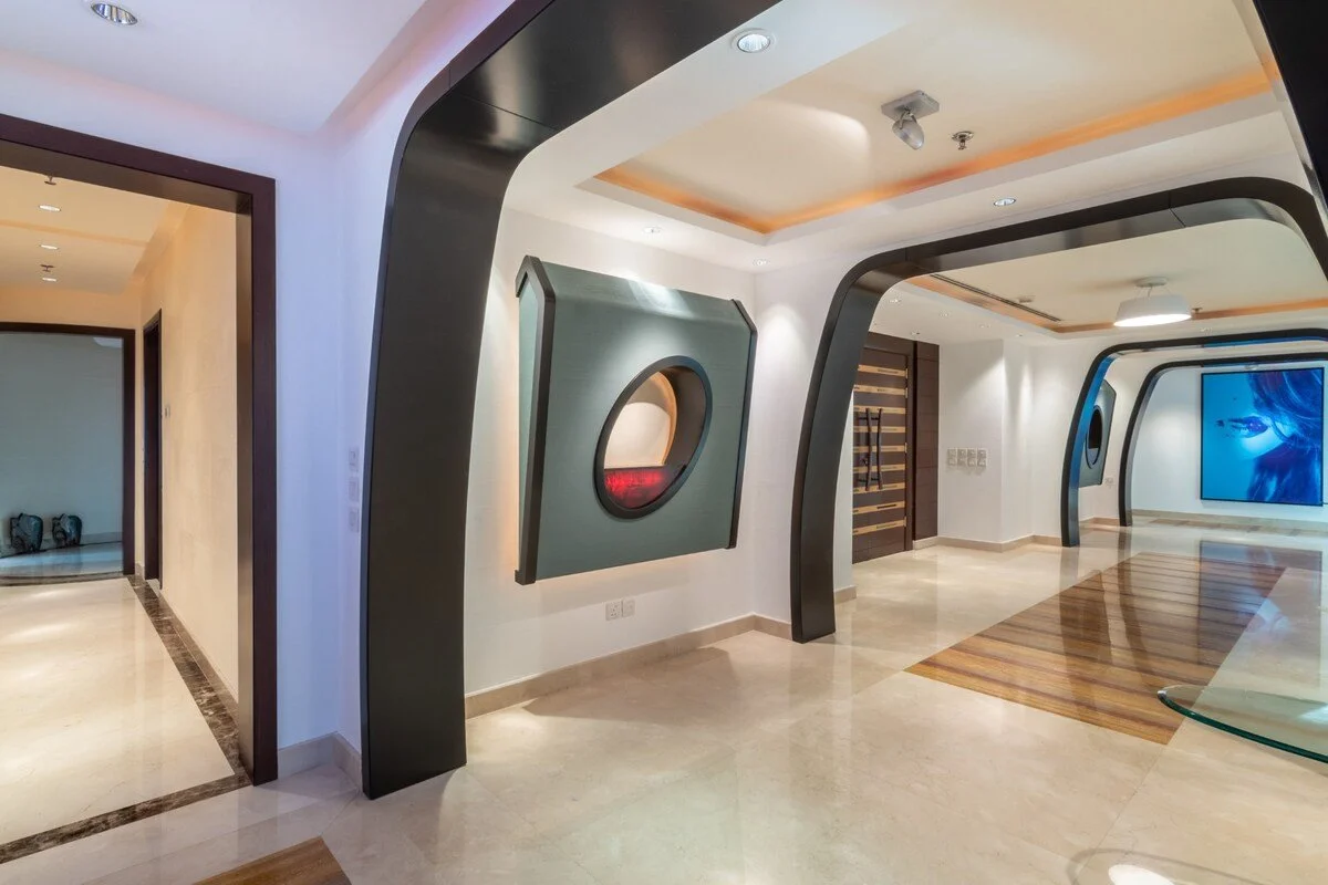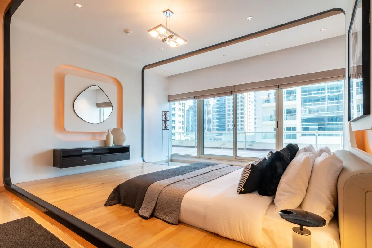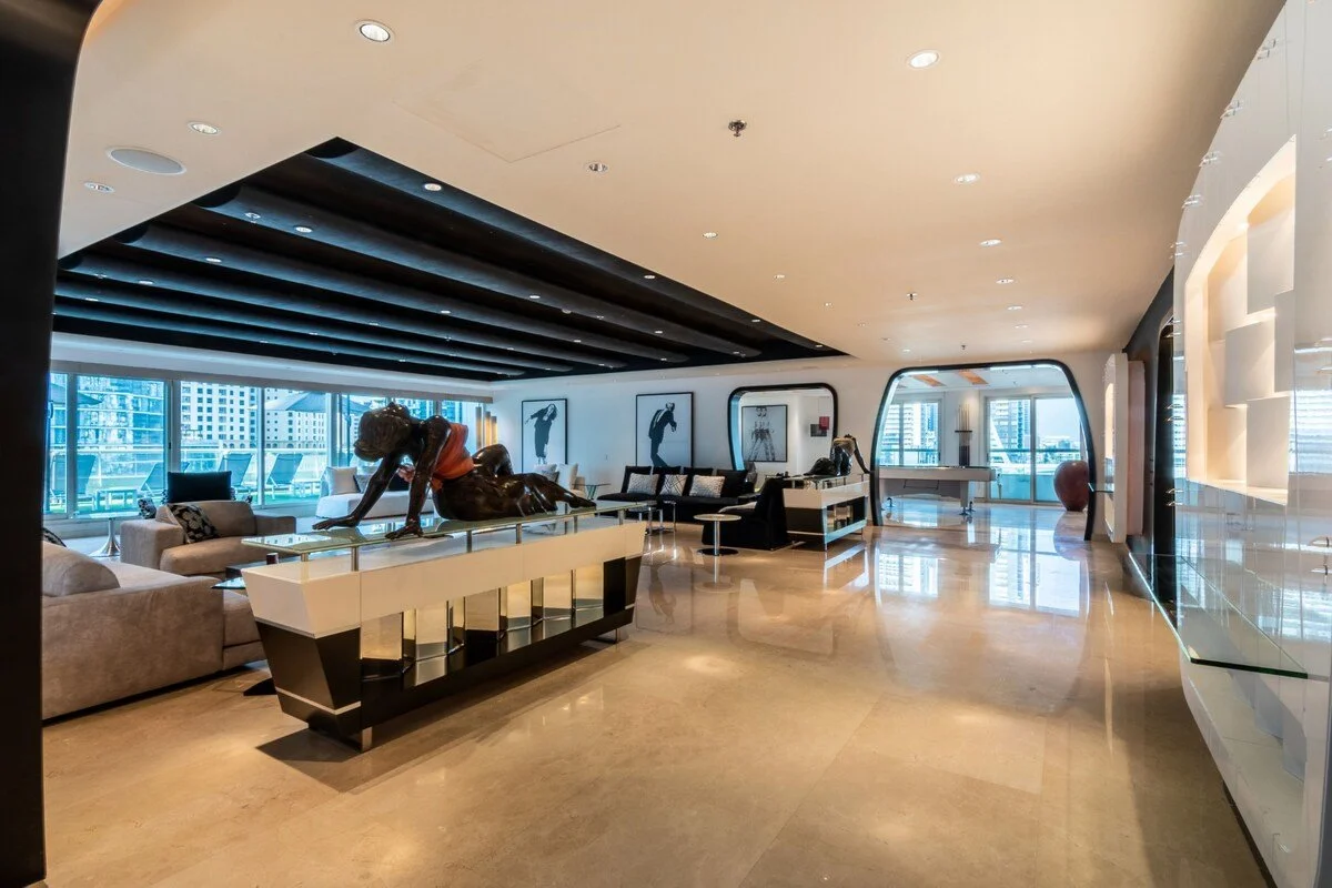 Located in Dubai Marina, Penthouse Lojo offers direct access to one of Dubai’s most vibrant waterfront districts. The Marina Walk, lined with restaurants, cafés and shops, is a short stroll away, while attractions such as Jumeirah Beach Residence (JBR), Bluewaters Island and The Beach are nearby. The area is well connected by public transport and main roads, providing easy access to Palm Jumeirah, Media City and Downtown Dubai. Despite the lively surroundings, the penthouse’s elevation ensures tranquillity and privacy with spectacular views of the marina’s yacht‑filled waters.