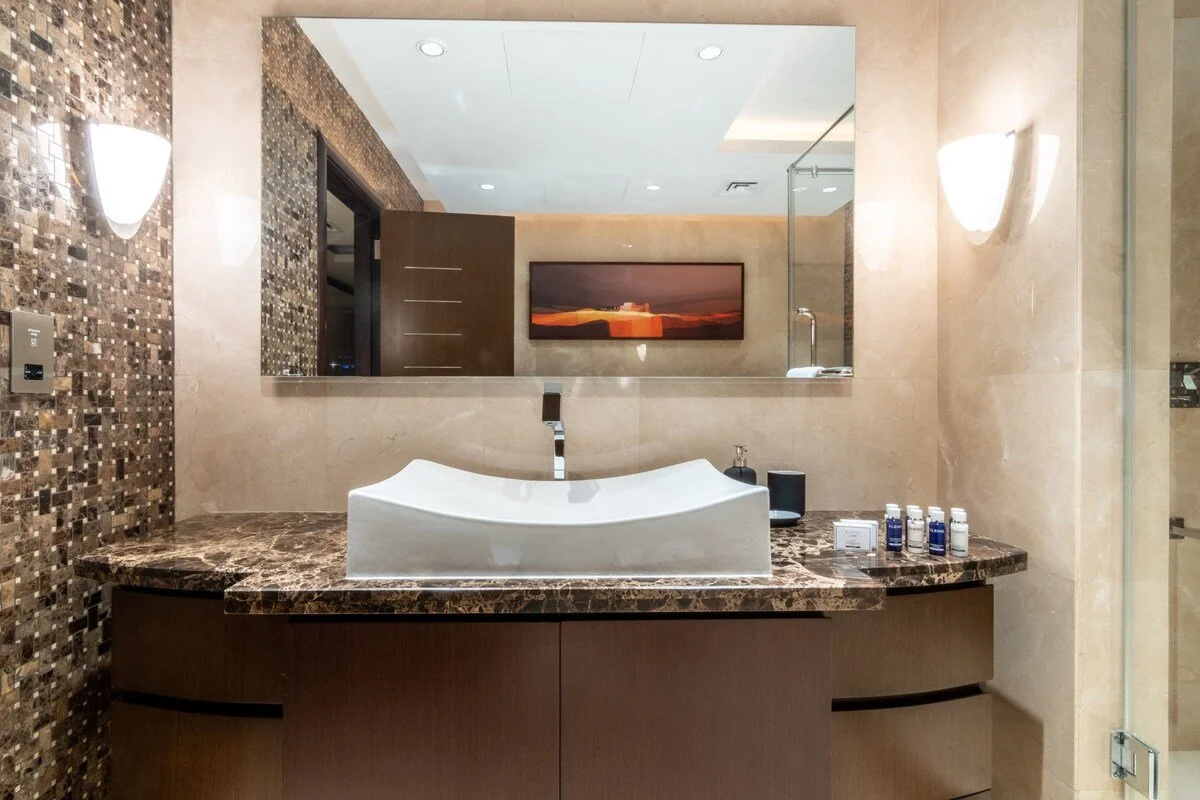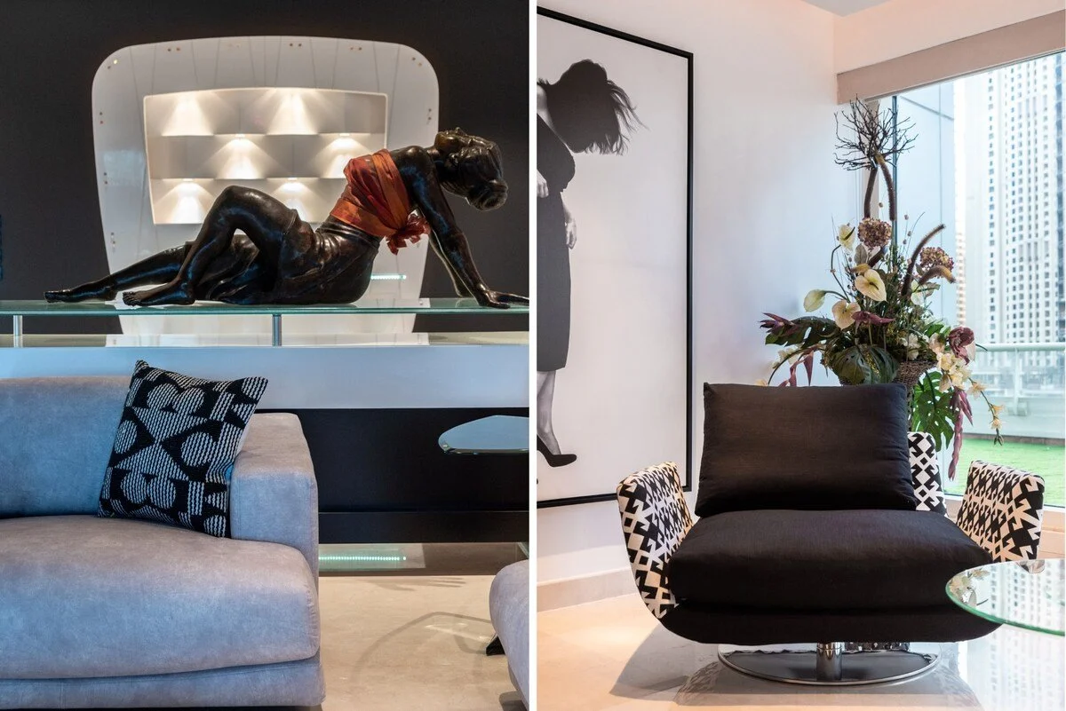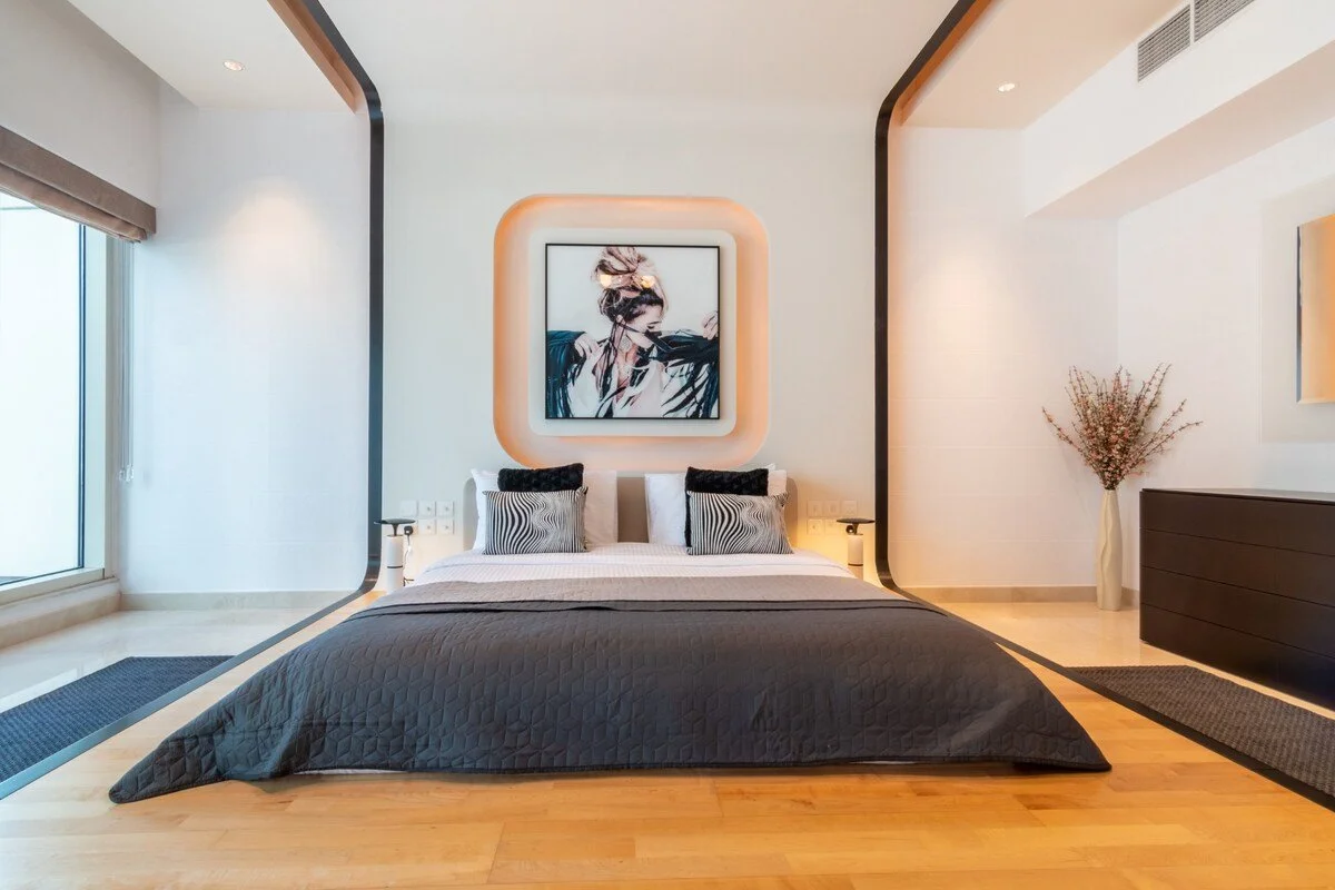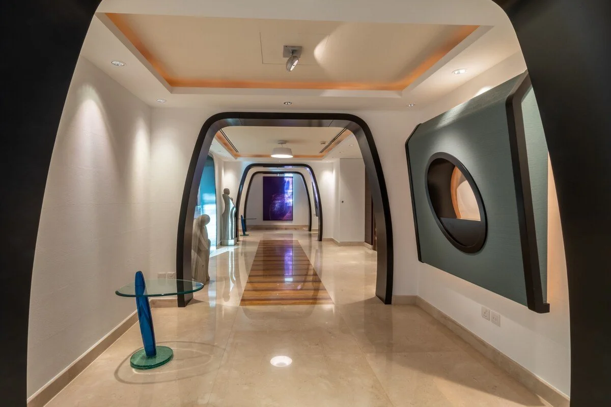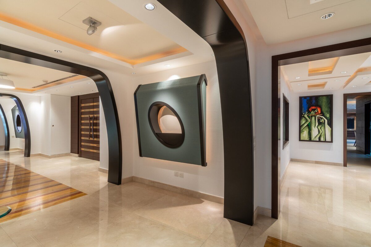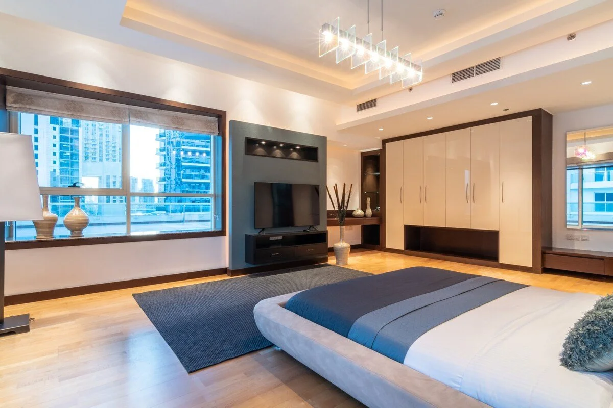 Located in Dubai Marina, Penthouse Lojo offers direct access to one of Dubai’s most vibrant waterfront districts. The Marina Walk, lined with restaurants, cafés and shops, is a short stroll away, while attractions such as Jumeirah Beach Residence (JBR), Bluewaters Island and The Beach are nearby. The area is well connected by public transport and main roads, providing easy access to Palm Jumeirah, Media City and Downtown Dubai. Despite the lively surroundings, the penthouse’s elevation ensures tranquillity and privacy with spectacular views of the marina’s yacht‑filled waters.