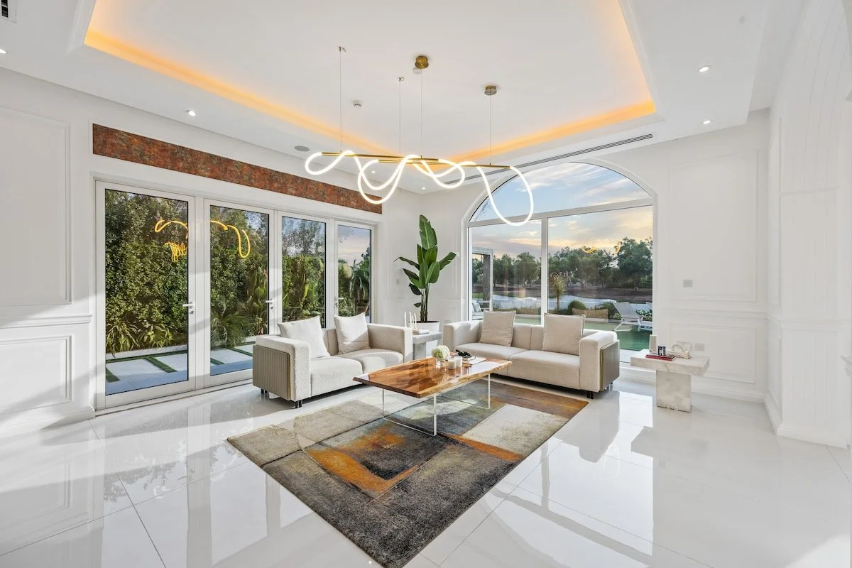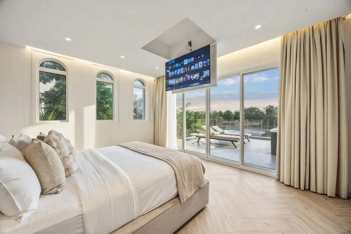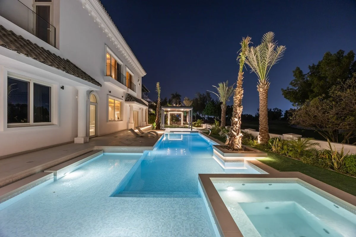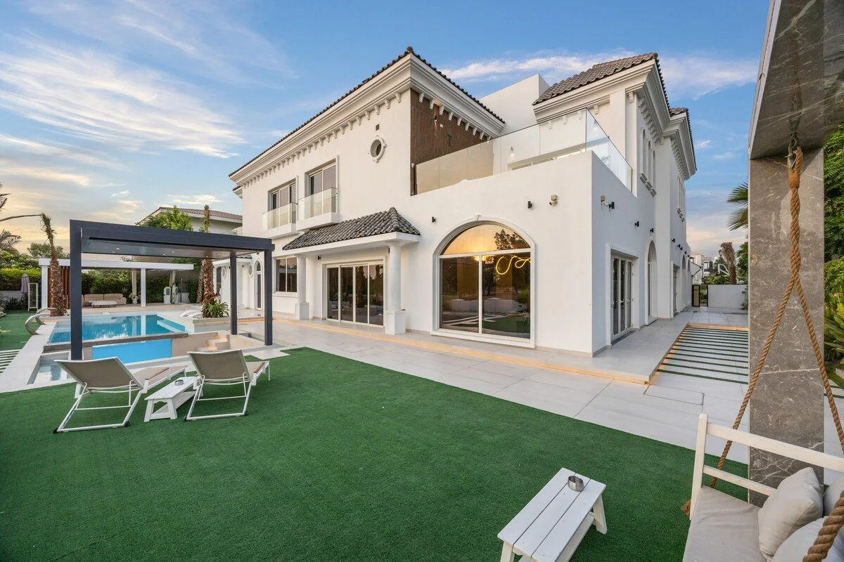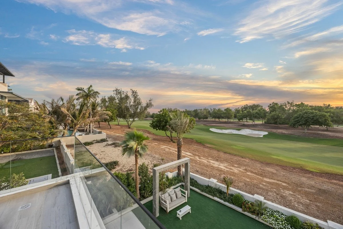Nestled within the lush greenery of Jumeirah Golf Estates, Villa Calyra exudes sophistication and tranquility. Overlooking the Earth Course, this elegant residence blends contemporary comfort with classic design. Ideal for families or groups, it provides a resort-like lifestyle within one of Dubai’s most secure gated communities.