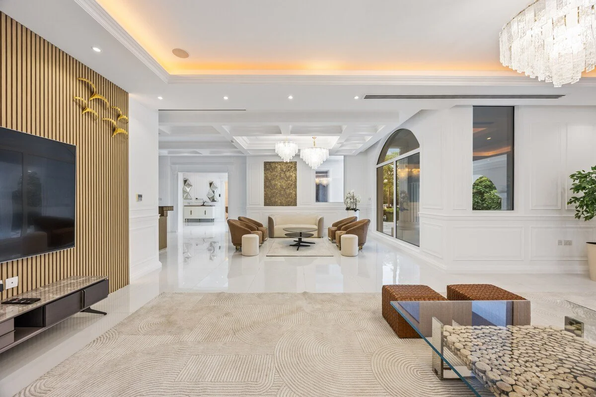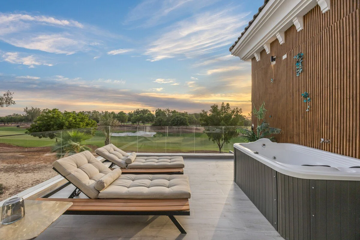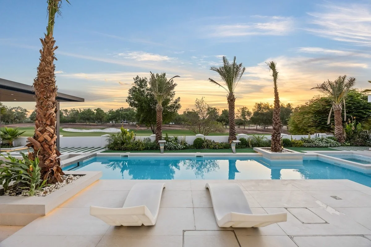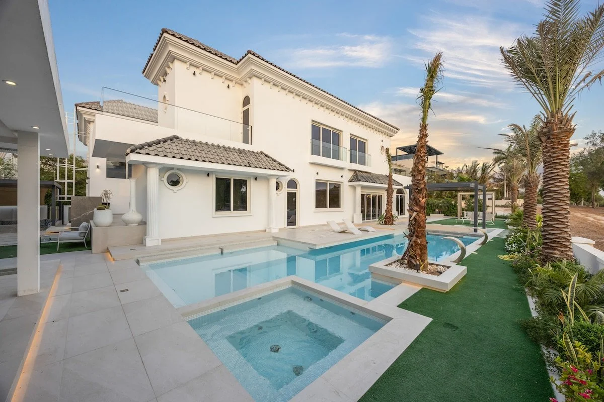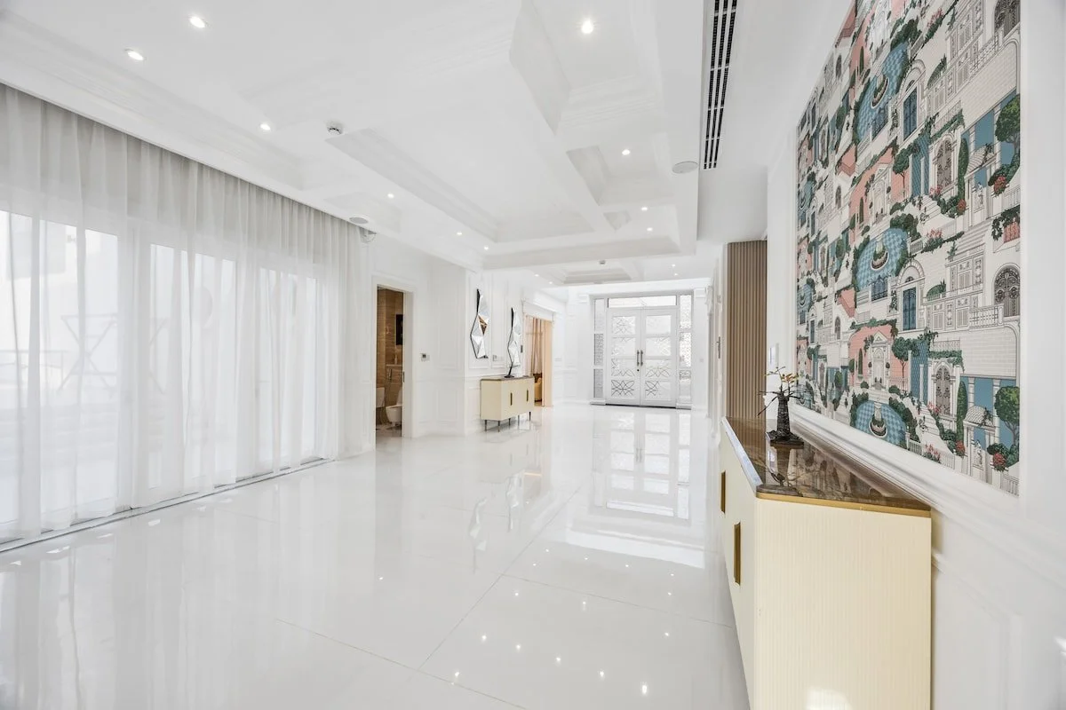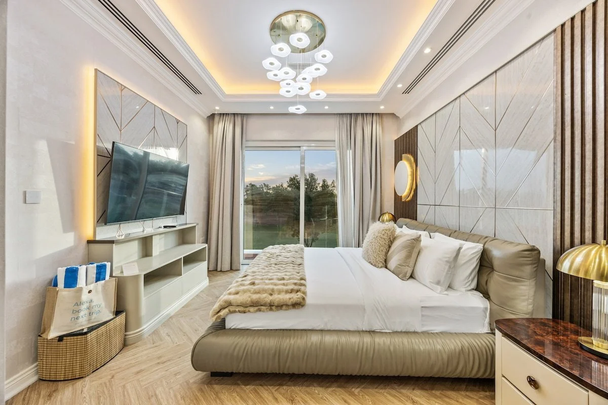 Nestled within the lush greenery of Jumeirah Golf Estates, Villa Calyra exudes sophistication and tranquility. Overlooking the Earth Course, this elegant residence blends contemporary comfort with classic design. Ideal for families or groups, it provides a resort-like lifestyle within one of Dubai’s most secure gated communities.