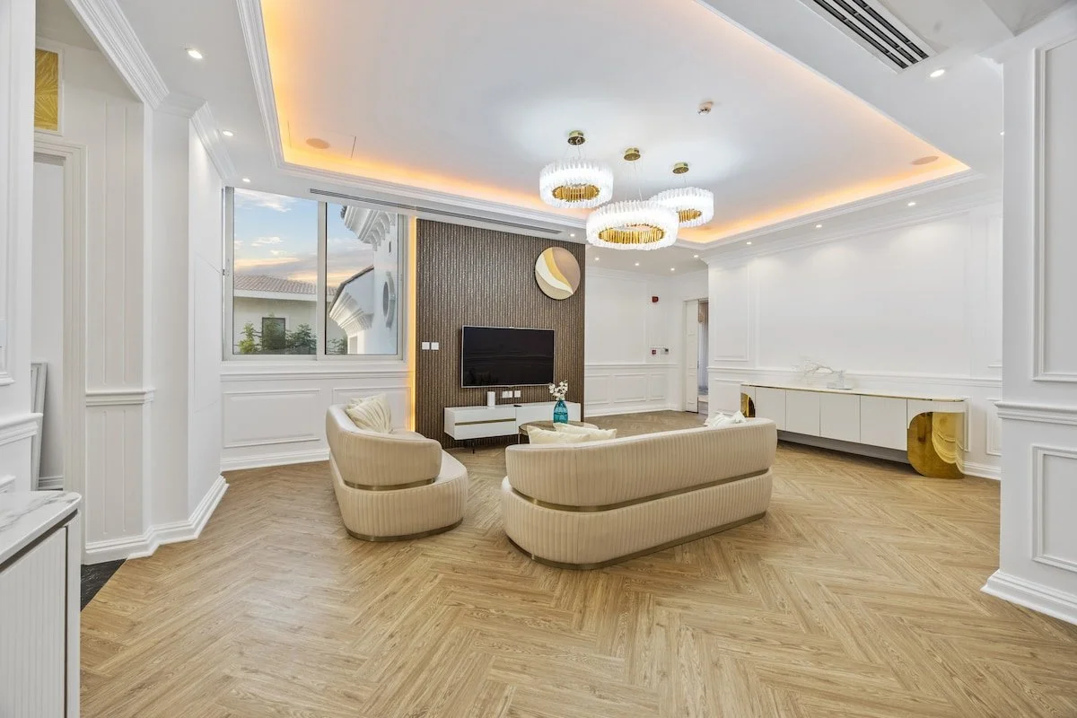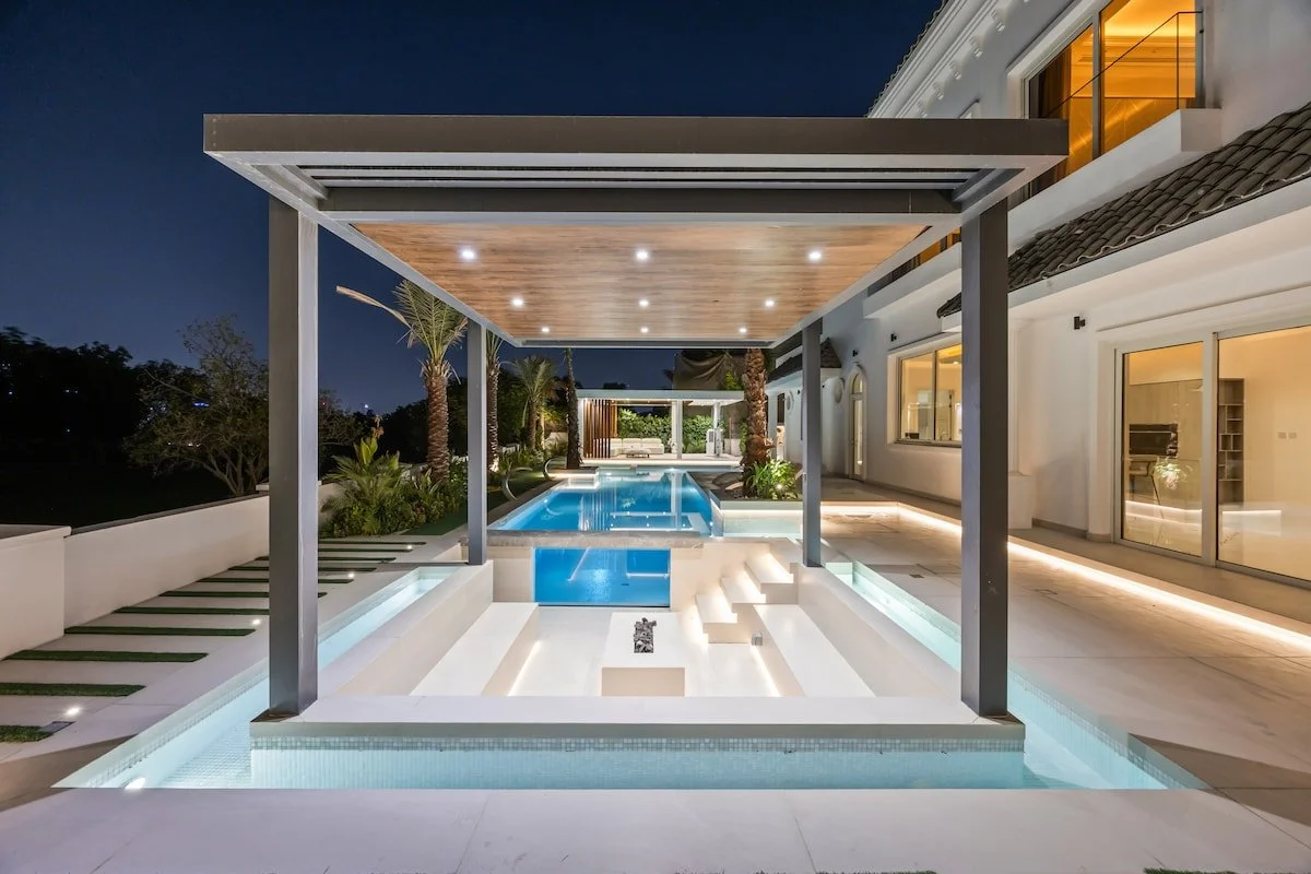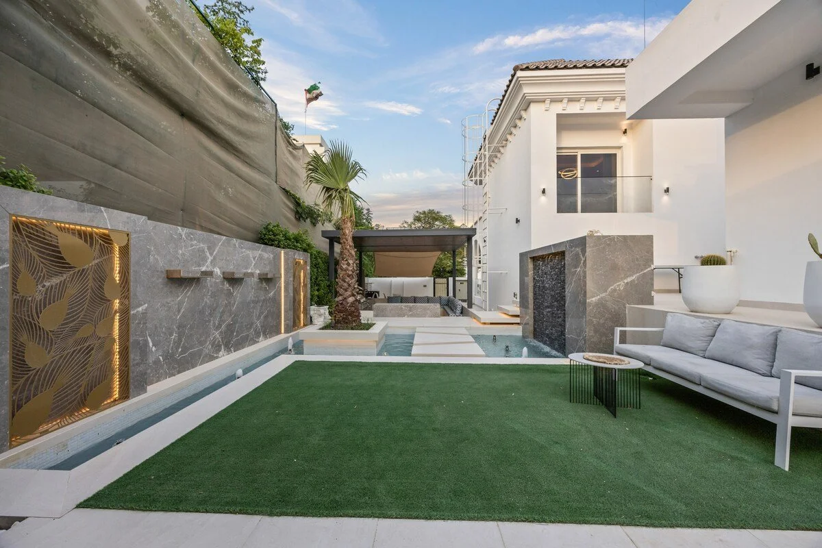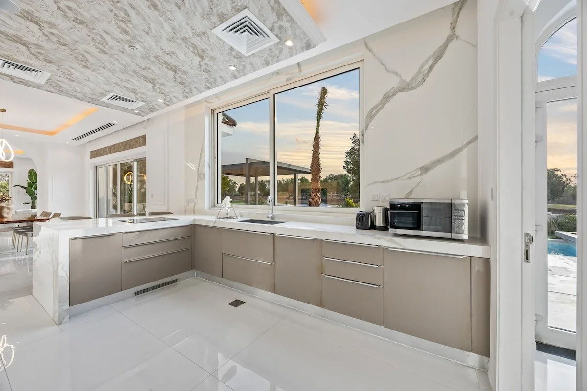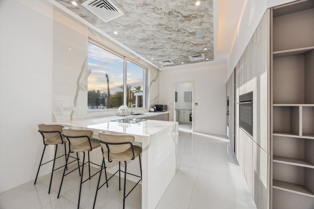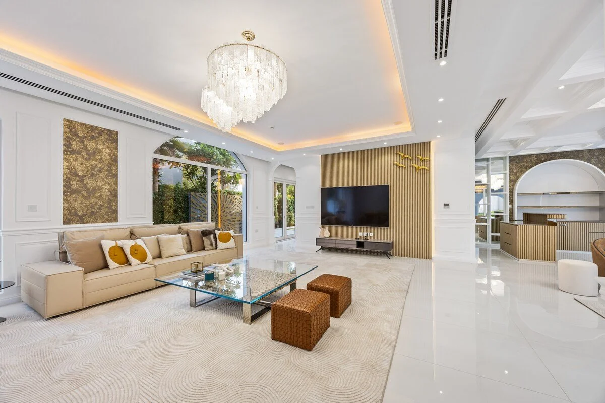 Nestled within the lush greenery of Jumeirah Golf Estates, Villa Calyra exudes sophistication and tranquility. Overlooking the Earth Course, this elegant residence blends contemporary comfort with classic design. Ideal for families or groups, it provides a resort-like lifestyle within one of Dubai’s most secure gated communities.