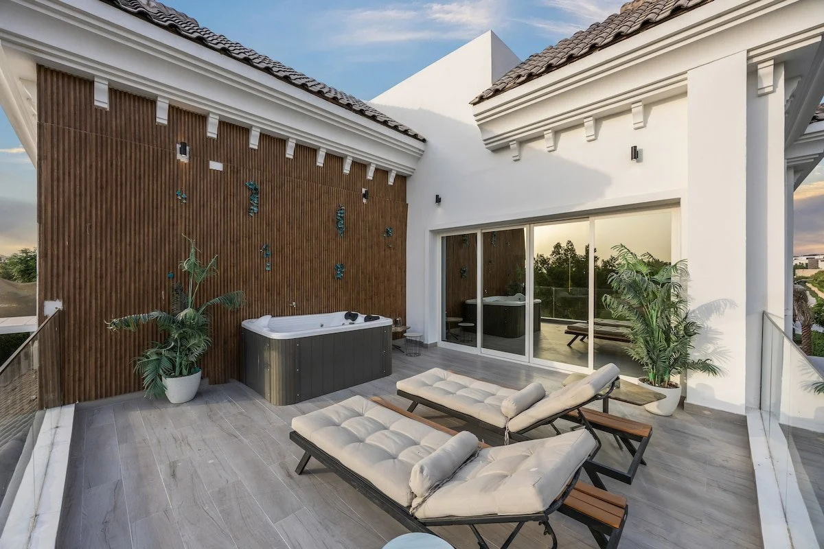 Outdoors, guests can enjoy a private swimming pool, landscaped garden, shaded lounge areas, and BBQ facilities. The villa is also close to community fitness centers, tennis courts, and jogging paths.