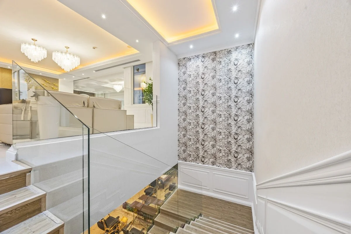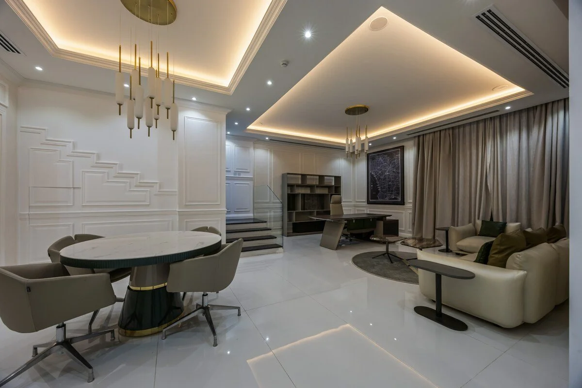 Located in Jumeirah Golf Estates, one of Dubai’s most prestigious gated communities, VILLA CALYRA offers a quiet, secure setting with access to green landscapes and sports facilities. Nearby are restaurants, cafés, and the JGE Clubhouse. Dubai Marina is 15 minutes away, and Downtown Dubai about 25 minutes by car.