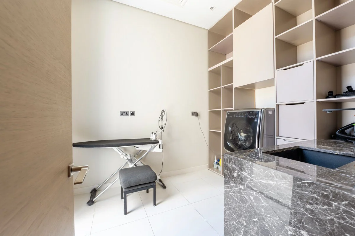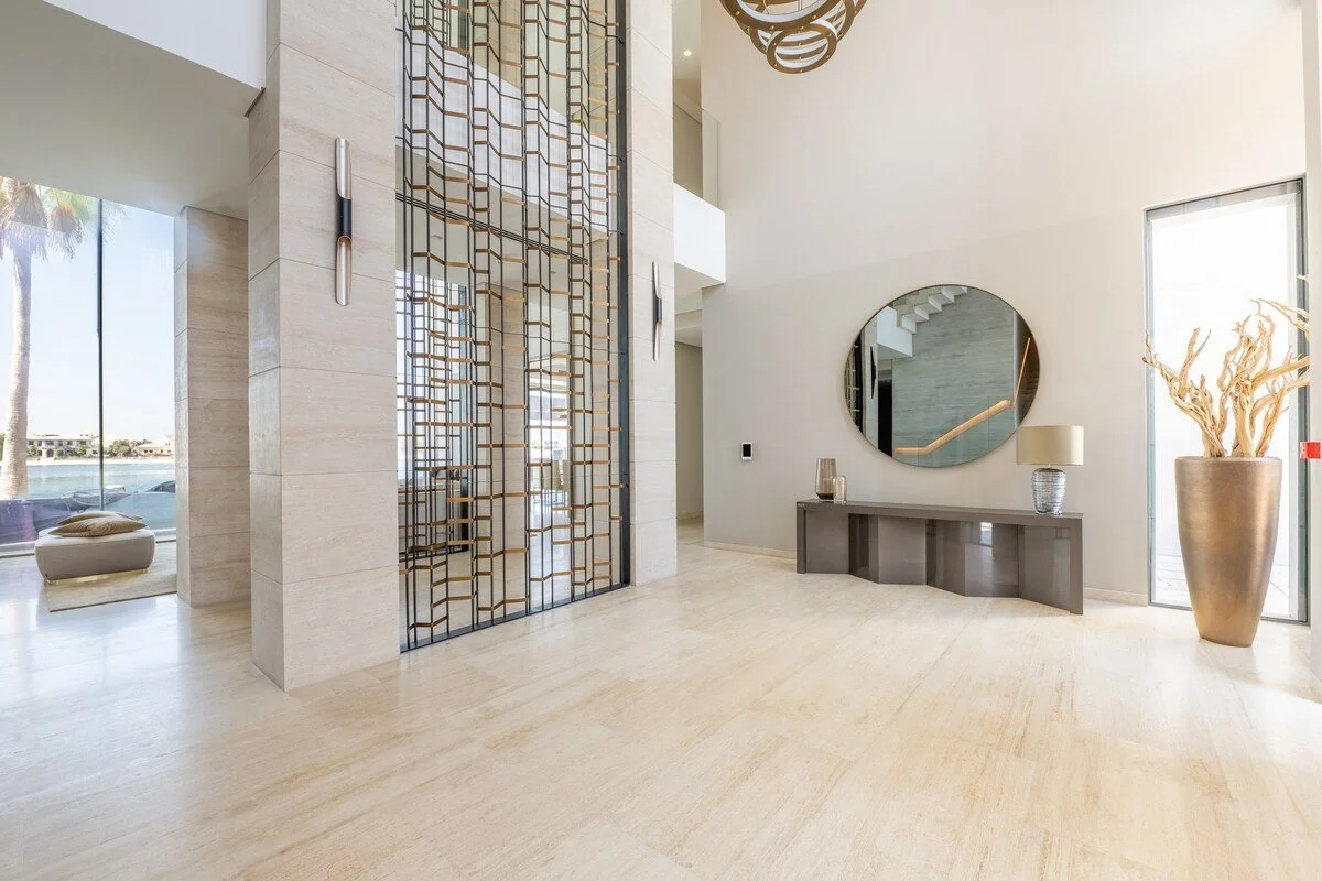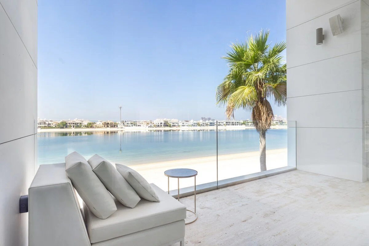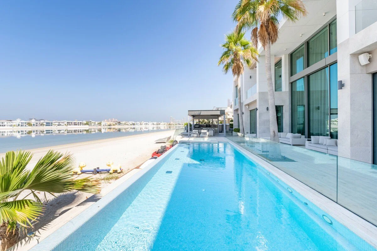 Palm Jumeirah, where this villa is located, is one of Dubai’s most iconic developments. This man‑made archipelago is shaped like a palm tree and offers an exclusive lifestyle: the “trunk” features parks, malls and restaurants, the “fronds” are lined with private villas, and the outer crescent hosts luxury resort complexes. The island is home to beach clubs, high‑end venues and famous hotels such as Atlantis The Palm and Atlantis The Royal. This urban mix of island residences, on‑trend restaurants and chic beach clubs creates a relaxed yet upscale vibe with waterfront views and easy access to many of the city’s best attractions