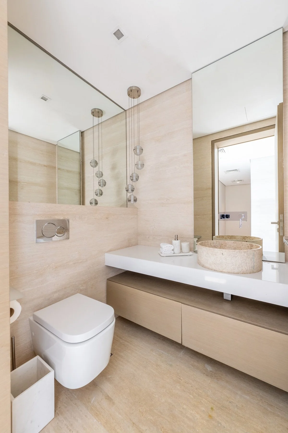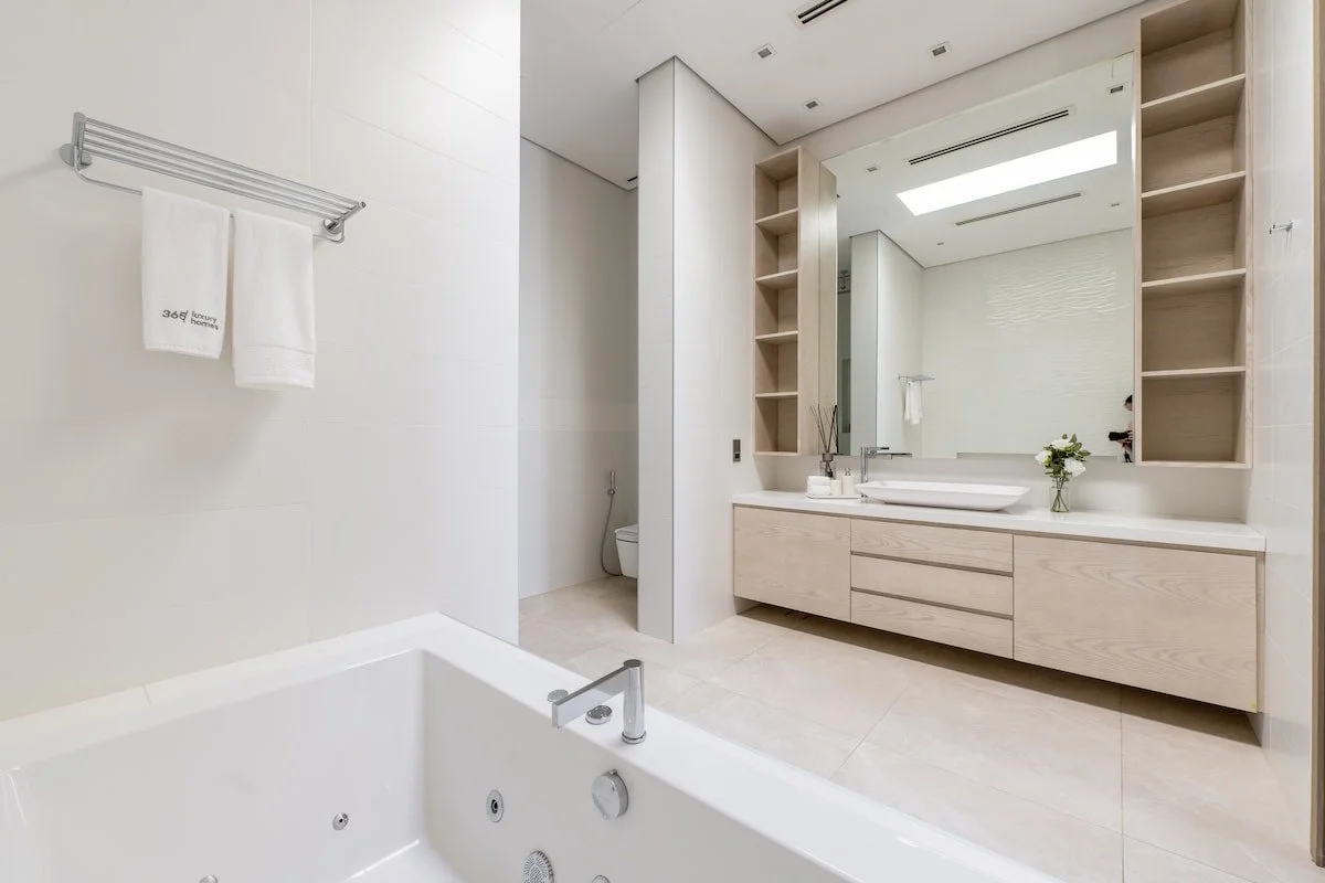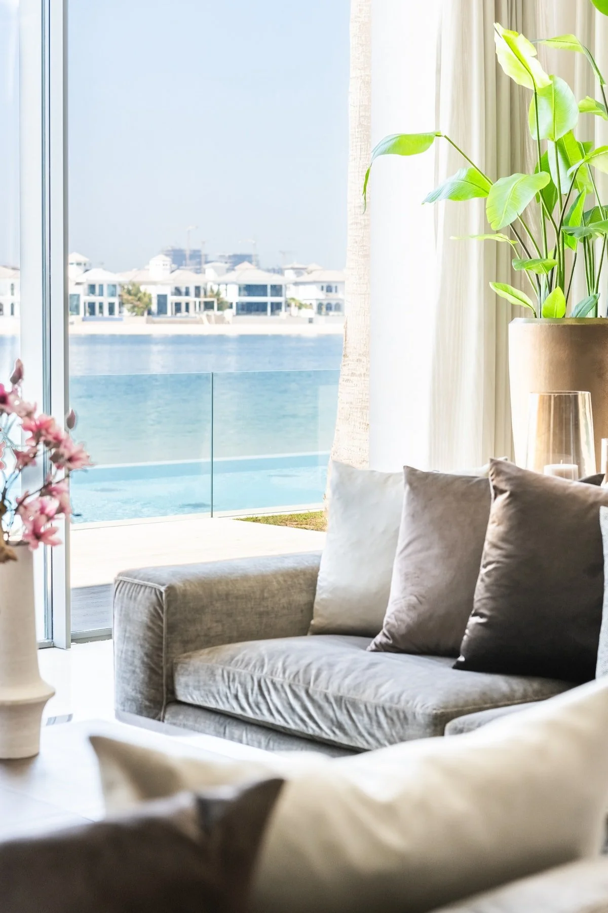 Palm Jumeirah, where this villa is located, is one of Dubai’s most iconic developments. This man‑made archipelago is shaped like a palm tree and offers an exclusive lifestyle: the “trunk” features parks, malls and restaurants, the “fronds” are lined with private villas, and the outer crescent hosts luxury resort complexes. The island is home to beach clubs, high‑end venues and famous hotels such as Atlantis The Palm and Atlantis The Royal. This urban mix of island residences, on‑trend restaurants and chic beach clubs creates a relaxed yet upscale vibe with waterfront views and easy access to many of the city’s best attractions