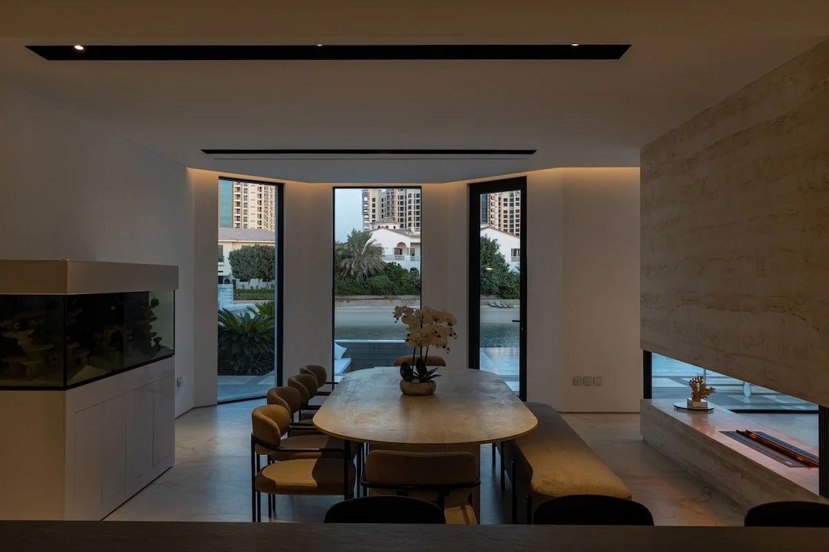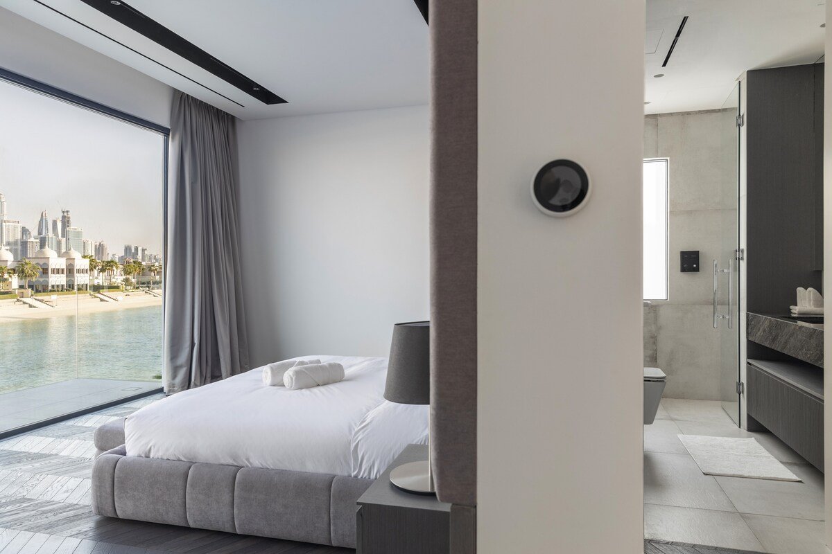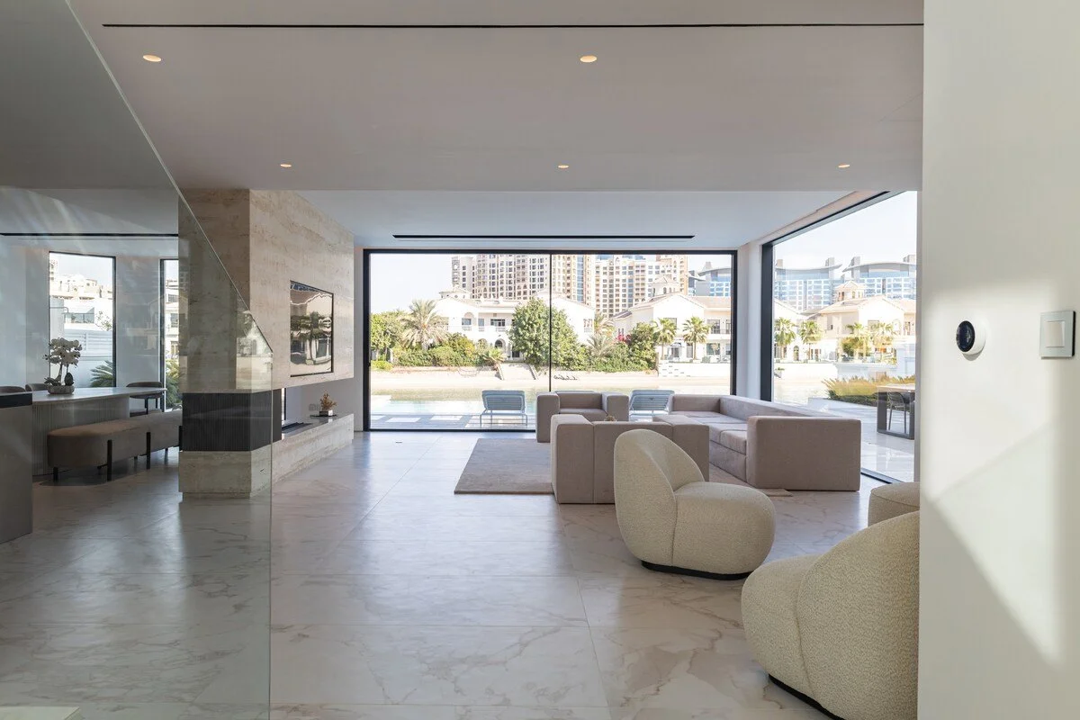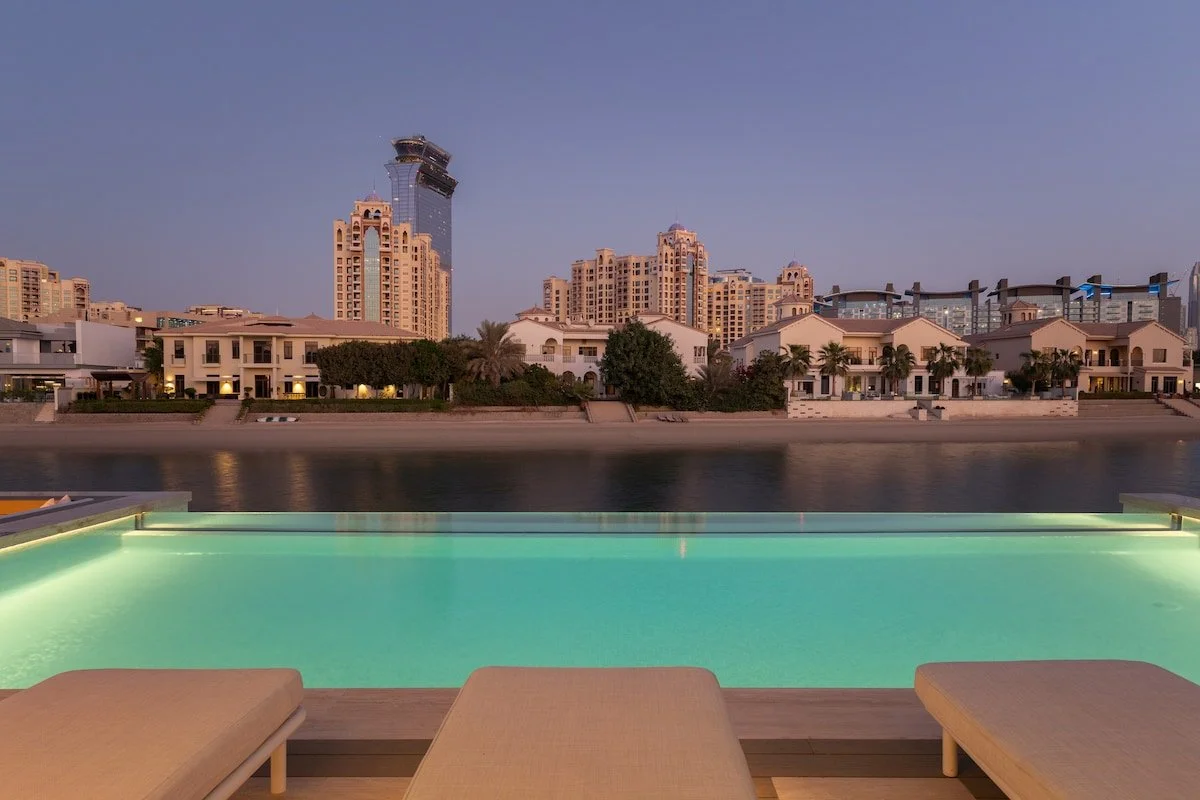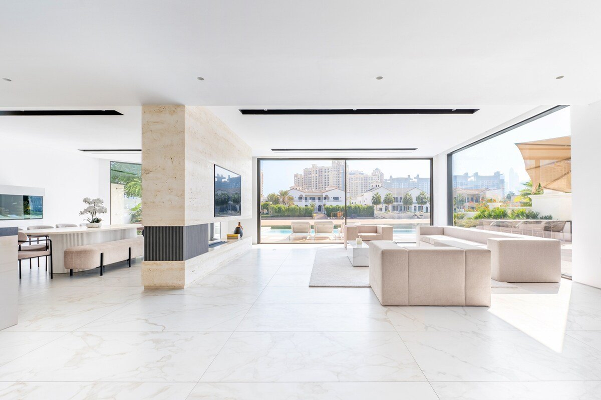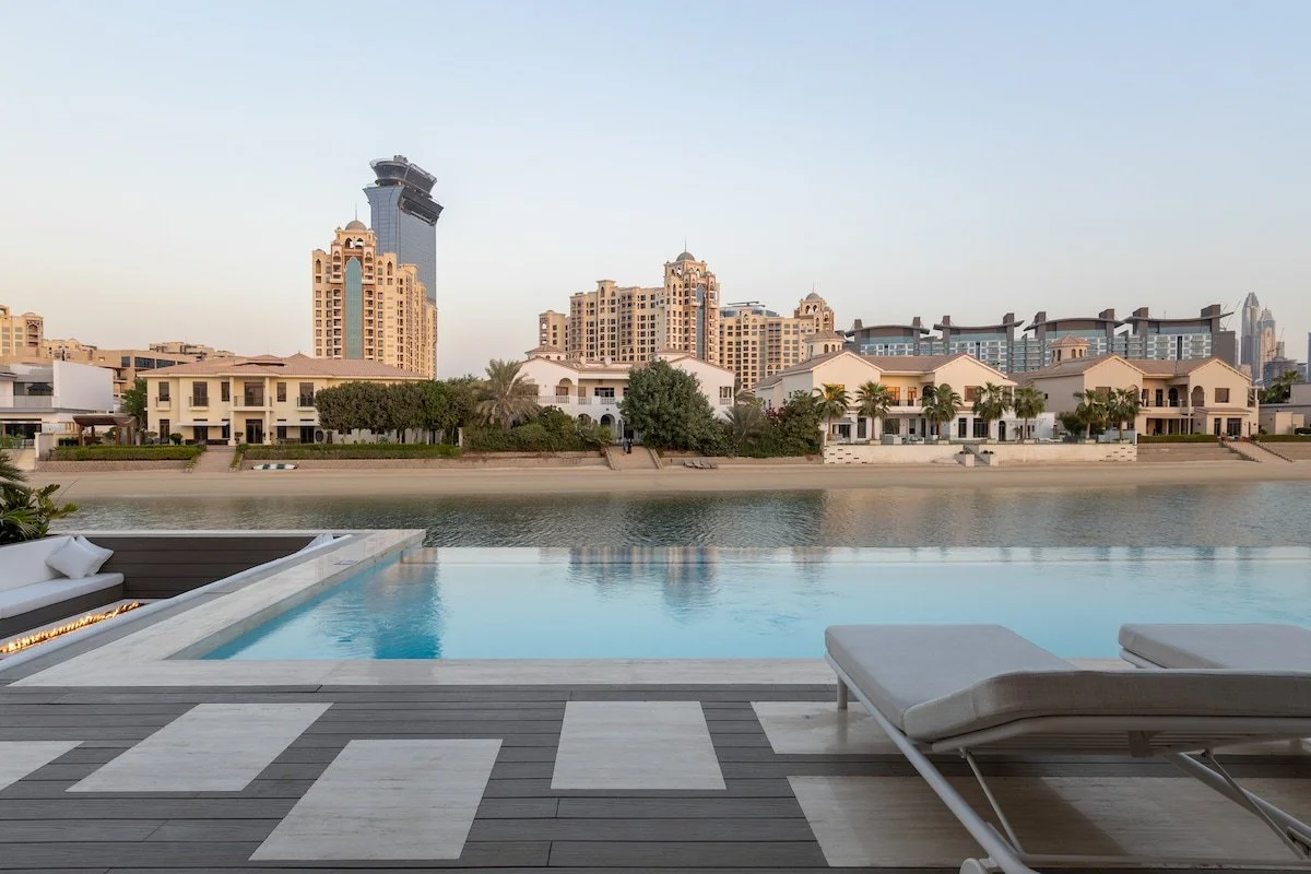 Palm Jumeirah, where this villa is located, is one of Dubai’s most iconic developments. This man‑made archipelago is shaped like a palm tree and offers an exclusive lifestyle: the “trunk” features parks, malls and restaurants, the “fronds” are lined with private villas, and the outer crescent hosts luxury resort complexes. The island is home to beach clubs, high‑end venues and famous hotels such as Atlantis The Palm and Atlantis The Royal. This urban mix of island residences, on‑trend restaurants and chic beach clubs creates a relaxed yet upscale vibe with waterfront views and easy access to many of the city’s best attractions