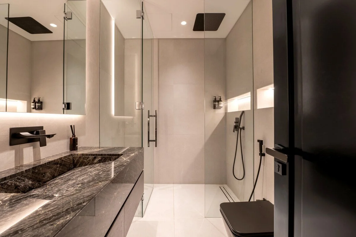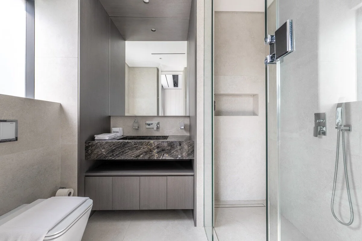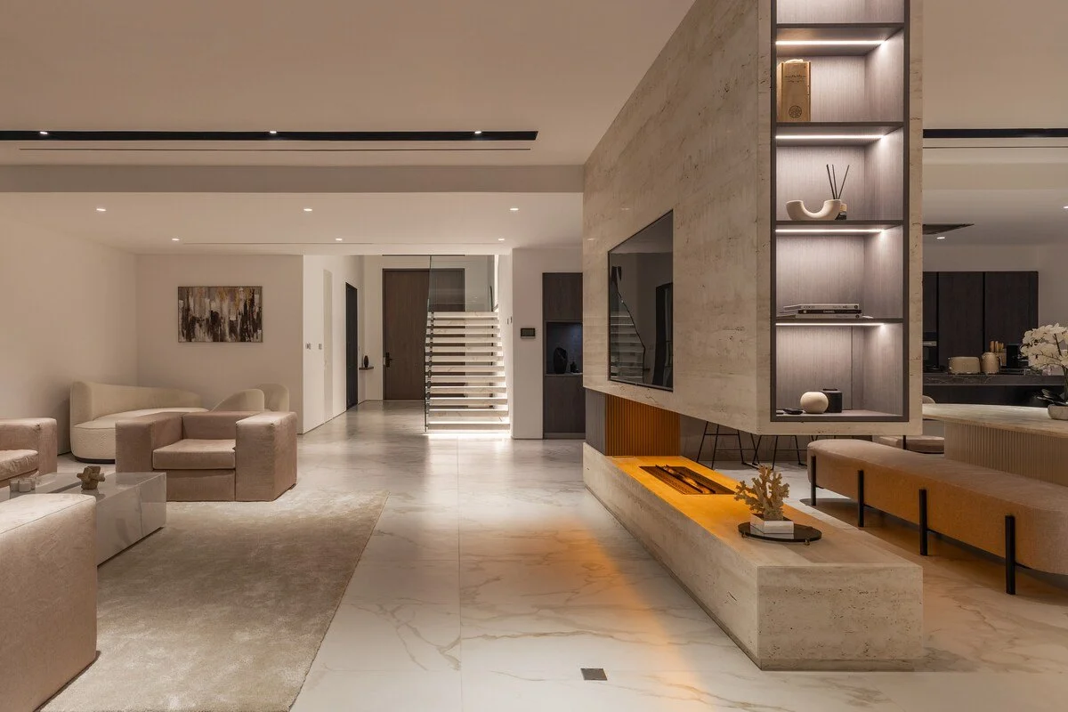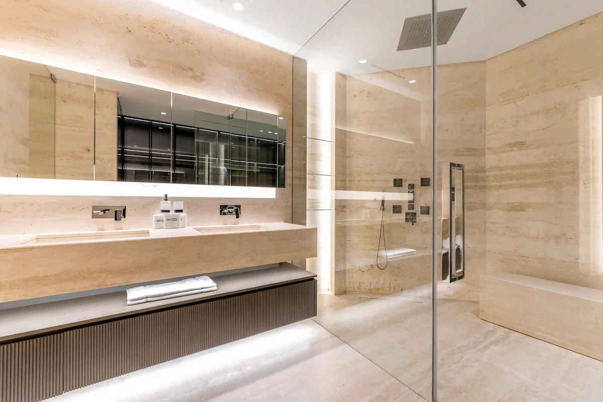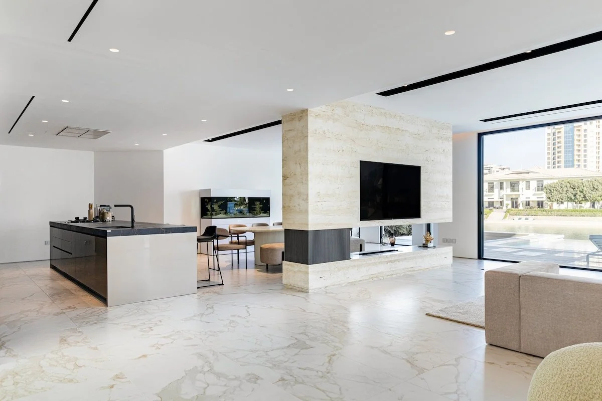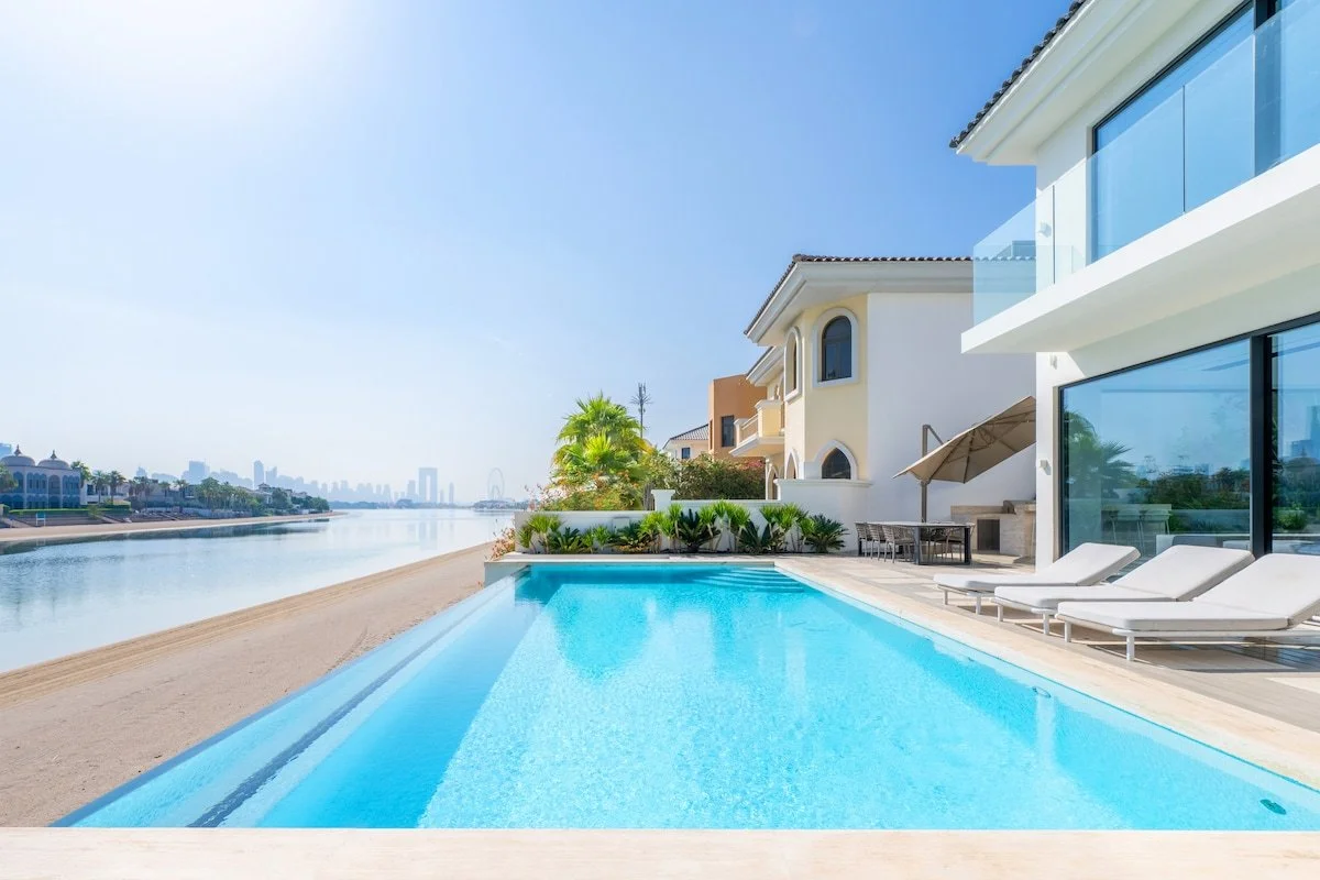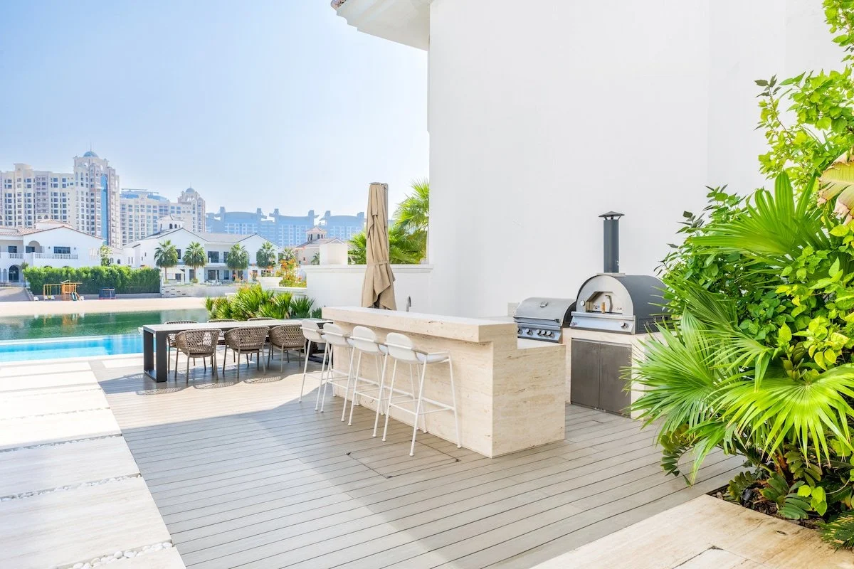 Palm Jumeirah, where this villa is located, is one of Dubai’s most iconic developments. This man‑made archipelago is shaped like a palm tree and offers an exclusive lifestyle: the “trunk” features parks, malls and restaurants, the “fronds” are lined with private villas, and the outer crescent hosts luxury resort complexes. The island is home to beach clubs, high‑end venues and famous hotels such as Atlantis The Palm and Atlantis The Royal. This urban mix of island residences, on‑trend restaurants and chic beach clubs creates a relaxed yet upscale vibe with waterfront views and easy access to many of the city’s best attractions